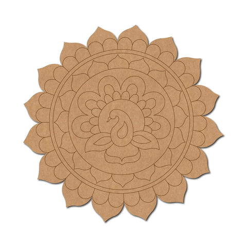 American Elm Wooden Peacock Mandala Pre-Marked MDF Base | Intricate Peacock Design | Durable MDF Craft Base | Ideal for DIY Art, Cultural Displays, and Festive Events (12 Inch-1 Pcs)