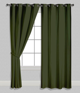 American-Elm Both Sided Dark Green Basic Satin Curtains- Two Panels