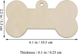 American Elm 24 Pcs Bone Shaped Wooden Cutouts Unfinished Wood Dog Bone Wood DIY Craft with Ropes, (4.1x2.2 Inch)