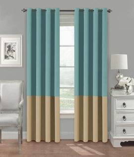 American-Elm 2 Panel Both Sided Blue, Light Beige Room Darkening 2 colour Blackout Curtains