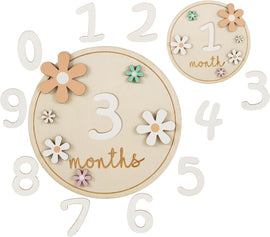 American Elm Wooden Baby Monthly Milestone Flower Style Baby Keepsake Newborn Sign with 11 Numbers Baby Milestone