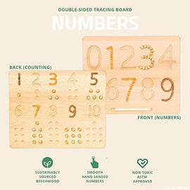 Whittlewud Number Tracing Board, Reversible Wooden Number and Counting Aid Board Montessori Toys for Toddlers, Preschool STEM Math Sensory Play