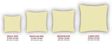 Cushions are available in 3 Sizes (12x12 inches), (16x16 inches), (18x18 inches) and 33 Different Colors. Please Select as per your Need.