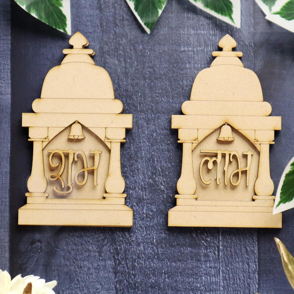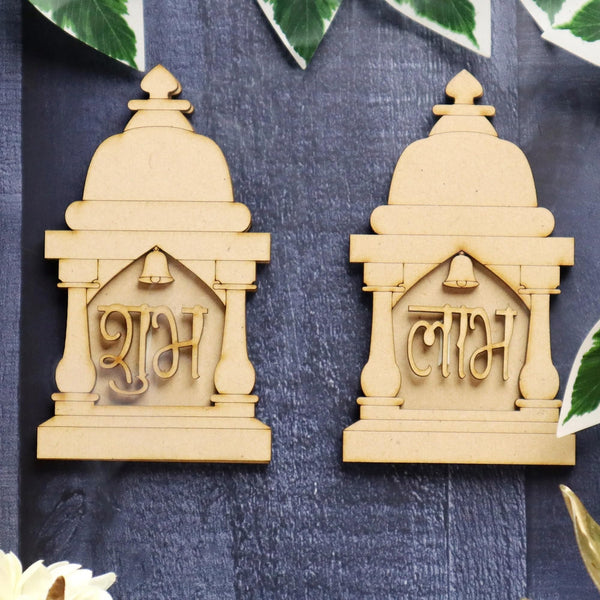 Elevate your Diwali celebrations with the Cliths Devalay Shubh Labh Sohn Diwali Decor set, a beautiful unfinished DIY wooden cutouts. These exquisite pieces are crafted from high-quality Pine MDF, each layer boasting a thickness of 2.8mm to ensure sturdiness and longevity. Measuring 4.75 x 2.75 inches.