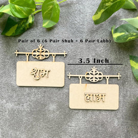 Cliths Shubh Labh Trishul Design Wooden Cutouts for Diwali Decorations DIY Unfinished MDF Craft for Toran & Door Hangings