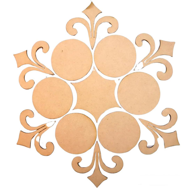 Celebrate Diwali in style with our Wooden Rangoli Design Set. This set includes a 12-inch MDF rangoli cutout that is 3mm thick, perfect for adding a touch of traditional elegance to your festive decor.