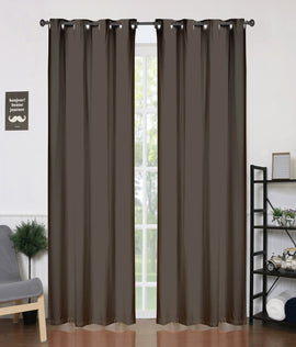 American-Elm Dark Brown Solid Shiny Room Darkening Blackout Grommet Curtains