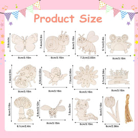 American Elm 24 PCS Unfinished Wood Cutouts Ornaments for Crafts 12 Styles Butterfly Flower Bee Bird Wooden Cutouts for Kids DIY Paint Hanging Decor for Home School Party Decorations (2 Style Each)