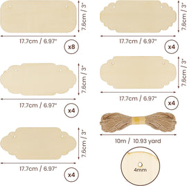 American Elm 24 Pack of Assorted Blank Unfinished Wood Plaques - Wooden Plywood Craft Cutouts with Hanging Rope - Ideal for DIY Arts & Crafts, 7 X 3 Inch