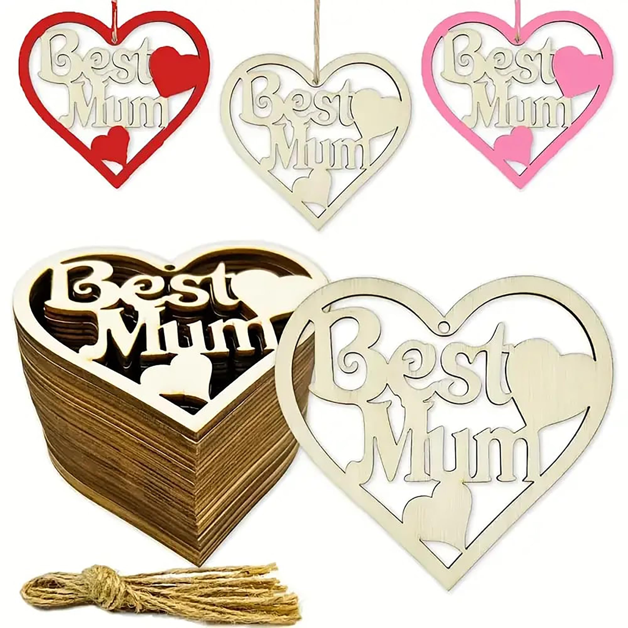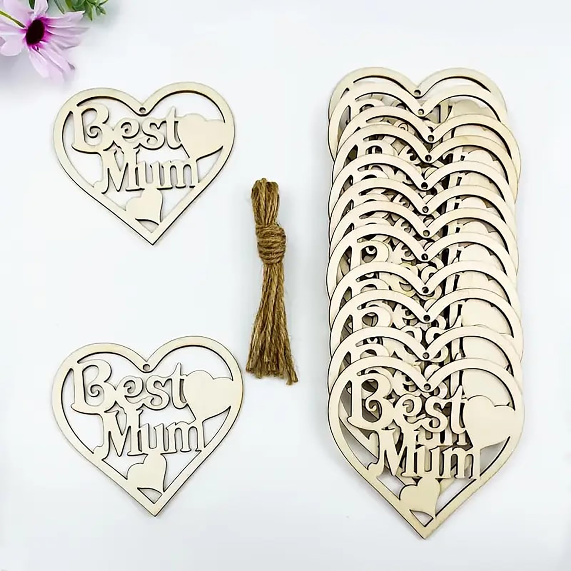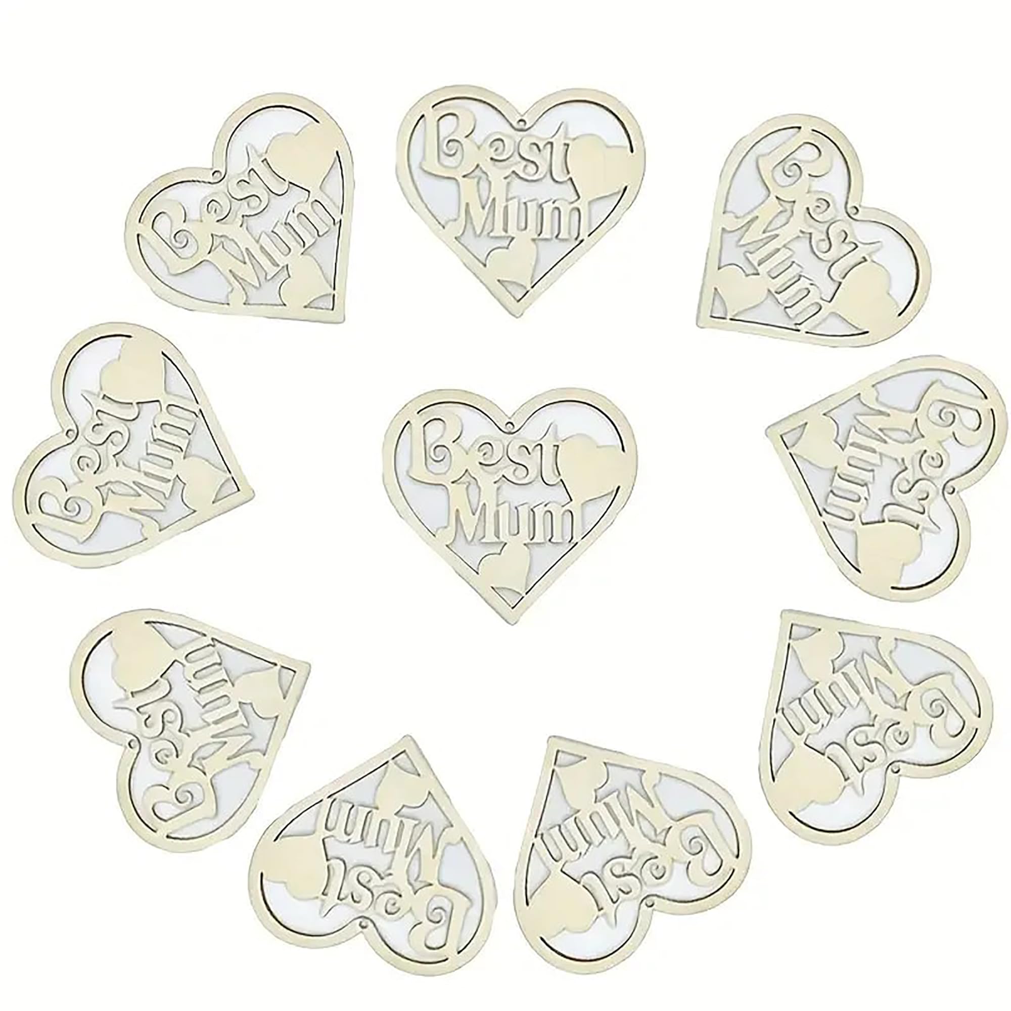 Celebrate Mother’s Day with a creative and heartfelt touch using the Cliths 10Pcs Wooden Craft Kit. This DIY craft set includes beautifully designed hollow heart shapes with "Best Mom" lettering, perfect for crafting unique gifts.