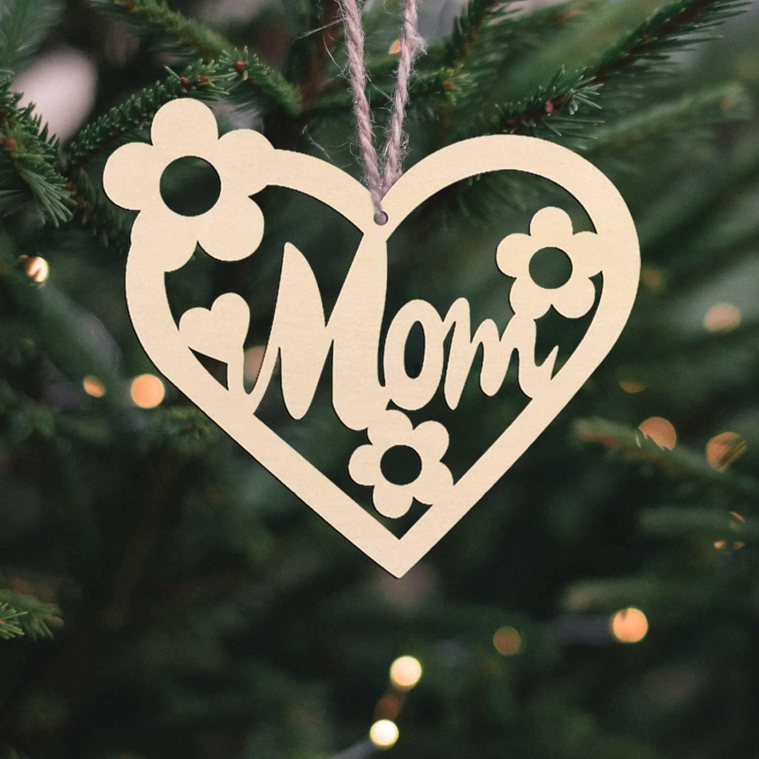 Package Includes: 20pcs x Wooden MOM Shaped Hanging Ornaments with Ropes