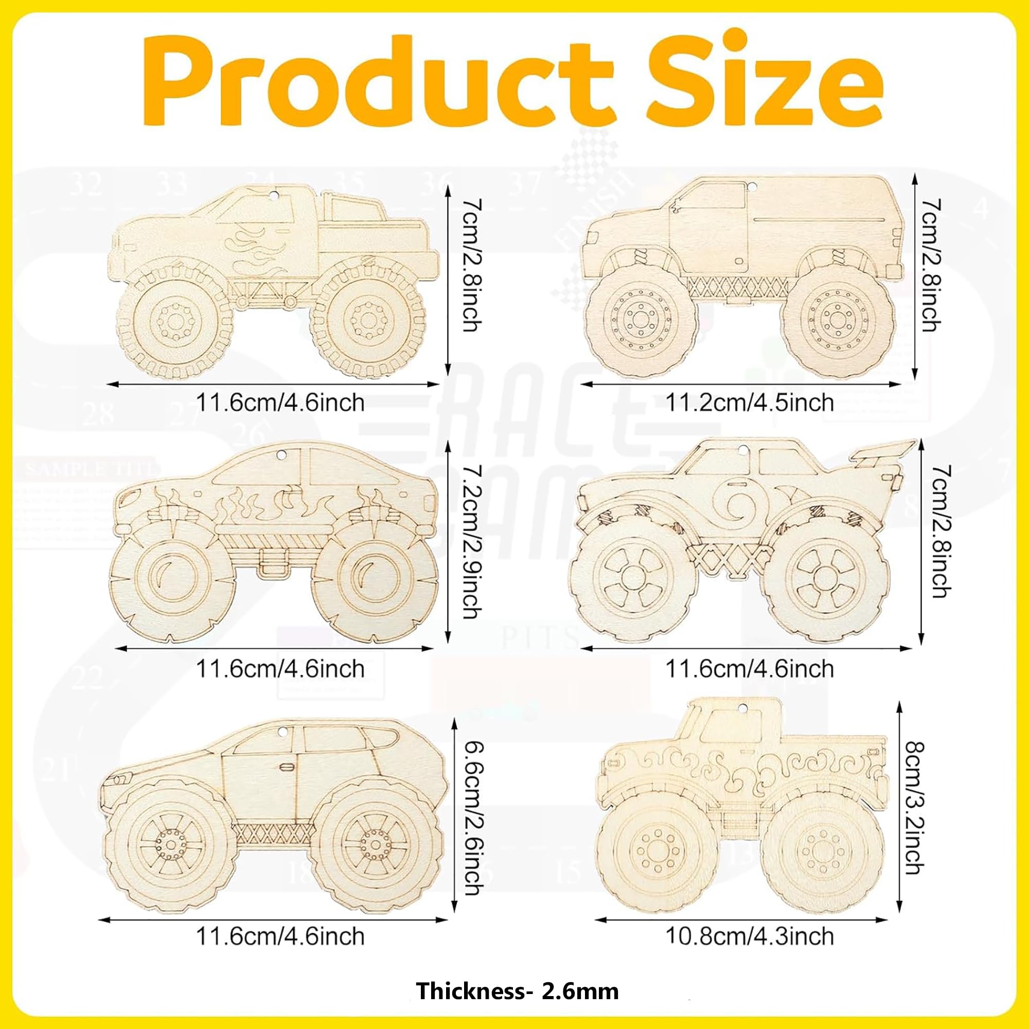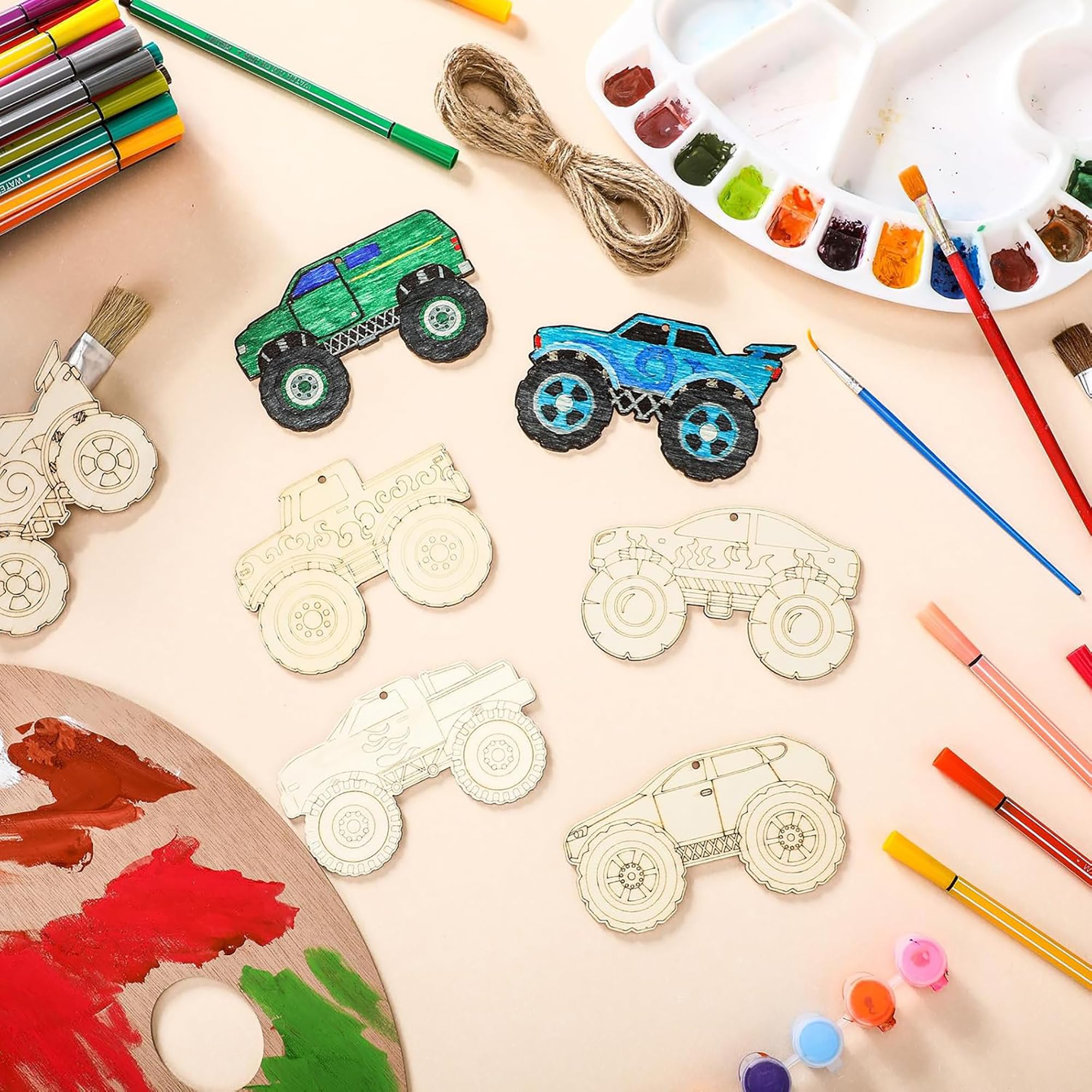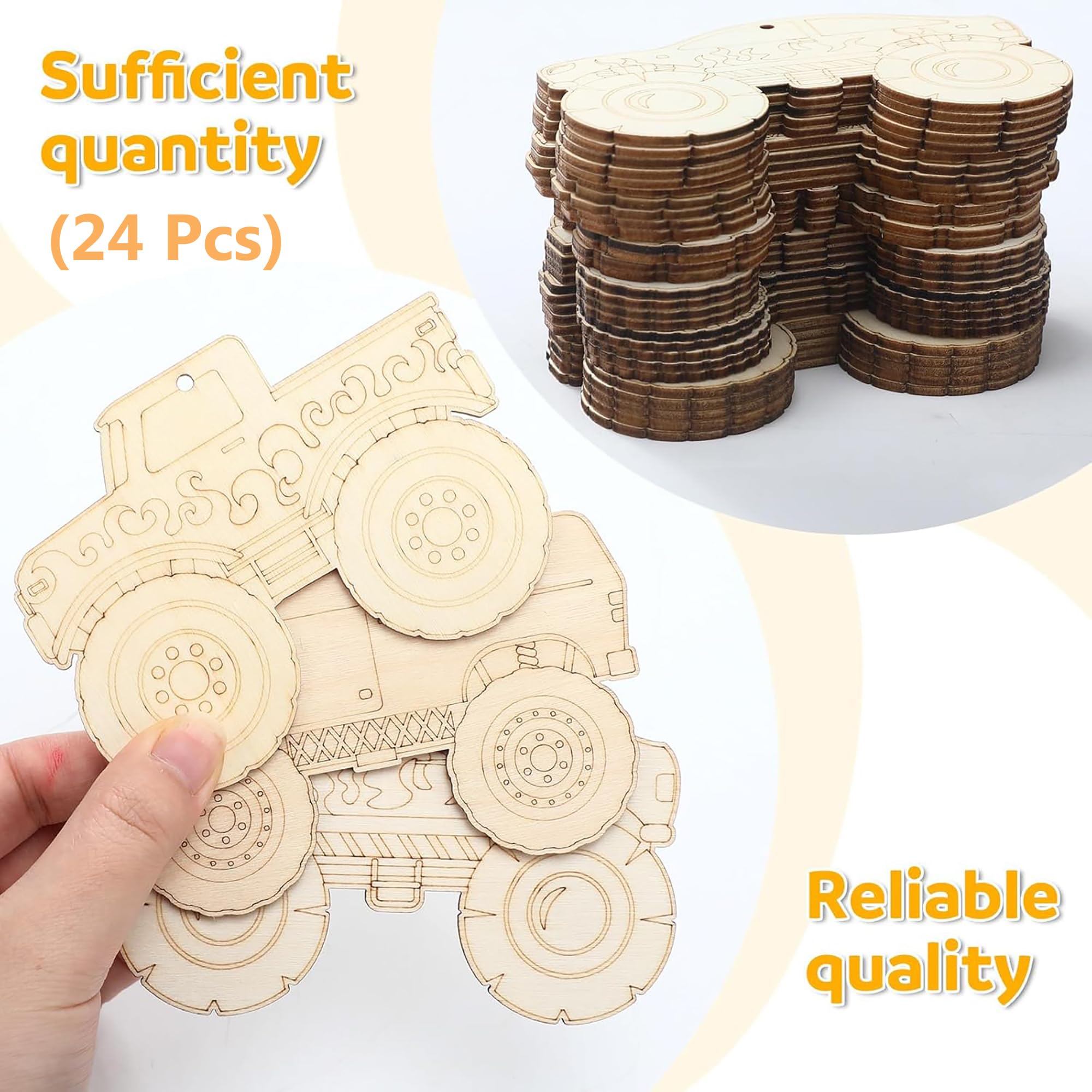 Let your child’s imagination run wild with the Cliths Pack of 24 Wooden Monster Truck Cutouts – a creative DIY art and decoration set that brings fun and adventure to every paint stroke!