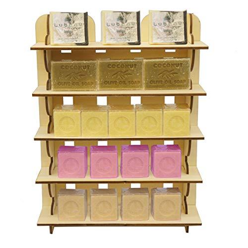 AmericanElm 5 Tiers Wooden Fence Design Collapsible Display Stand for Craft Fair, Art Trade Shows, for Jewelry, Soap, Candle, Essential Oil Display. Our display stands are great for organizing and showing off your products, whether for your craft stall, show or to display in a retail shop.The stand is made from plywood, the plywood is left natural so you can apply your own stain or finish should you wish to. It can be easily packed flat to take with you on your travels.