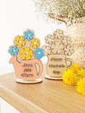 This thoughtful Mothers day flower pot craft kit is the perfect gift for Mom. With easy to assemble wooden cutouts and a sturdy unfinished pot stand, it offers a fun DIY project to do with kids to create a beautiful fresh bouquet. The 8-inch pot stand and 3mm thick flower shapes allow for versatile customization with a variety of flowers. Once complete, Mom can proudly display this handmade gift that will remind her of the love from her family not only on Mothers day but for years to come. All materials are included for a low-mess, quality time activity with the little ones to celebrate their Nana, Mom or special mother figure. Simple natural designs ensure this gift will complement any home decor style.