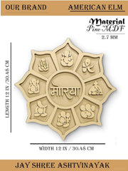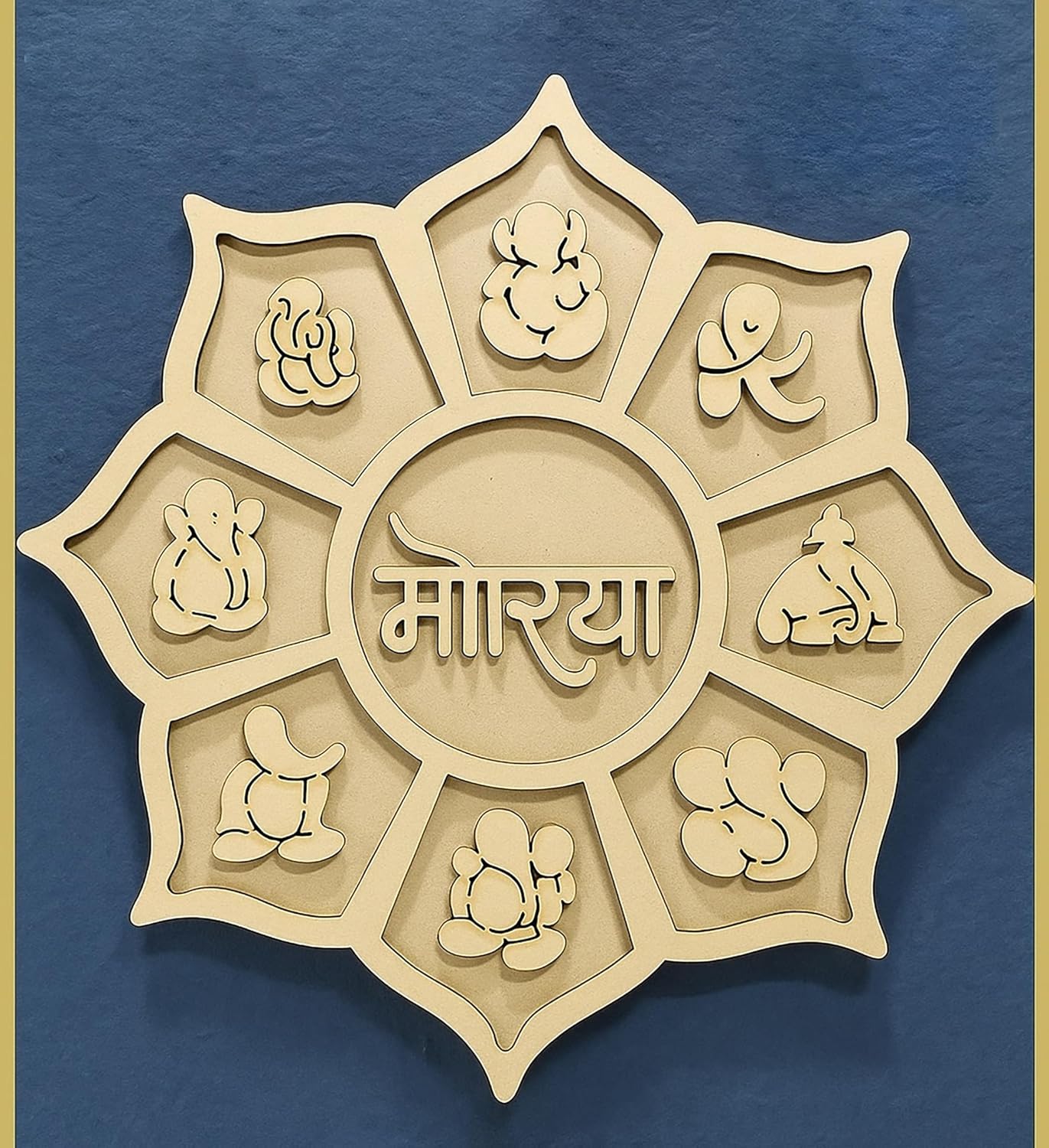 🛕 American Elm 2 Layer Ashtavinayak Mandala Wall Art is a symbolic Ganpati inspired decor piece made from 2.7 mm Pine MDF and sized approx. 30 cm. Featuring “Morya” and “Jay Shree Ashtavinayak”, it blends devotion with handcrafted beauty for any Hindu household or celebration.