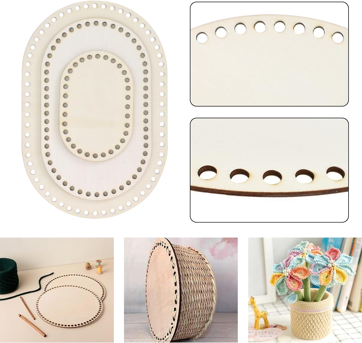 This American Elm 3-Size Oval Basket Bottom Set provides good foundations for functional crafts. Includes three graduated sizes (10x15 cm, 20x15 cm, 30x15 cm) in durable 2.7mm MDF with pre-drilled holes.