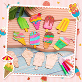 Welcome to the world of creativity with the American Elm 32 Pcs Wooden Ice Cream Set for kids. This DIY craft kit is perfect for sparking your child's imagination and keeping them engaged in a fun and educational activity. Each set includes 32 pieces of unfinished wood cutouts, featuring 8 unique ice cream designs with 4 pieces of each design. These cutouts, measuring 4.33 inches in height, are ideal for various summer art projects and crafts.