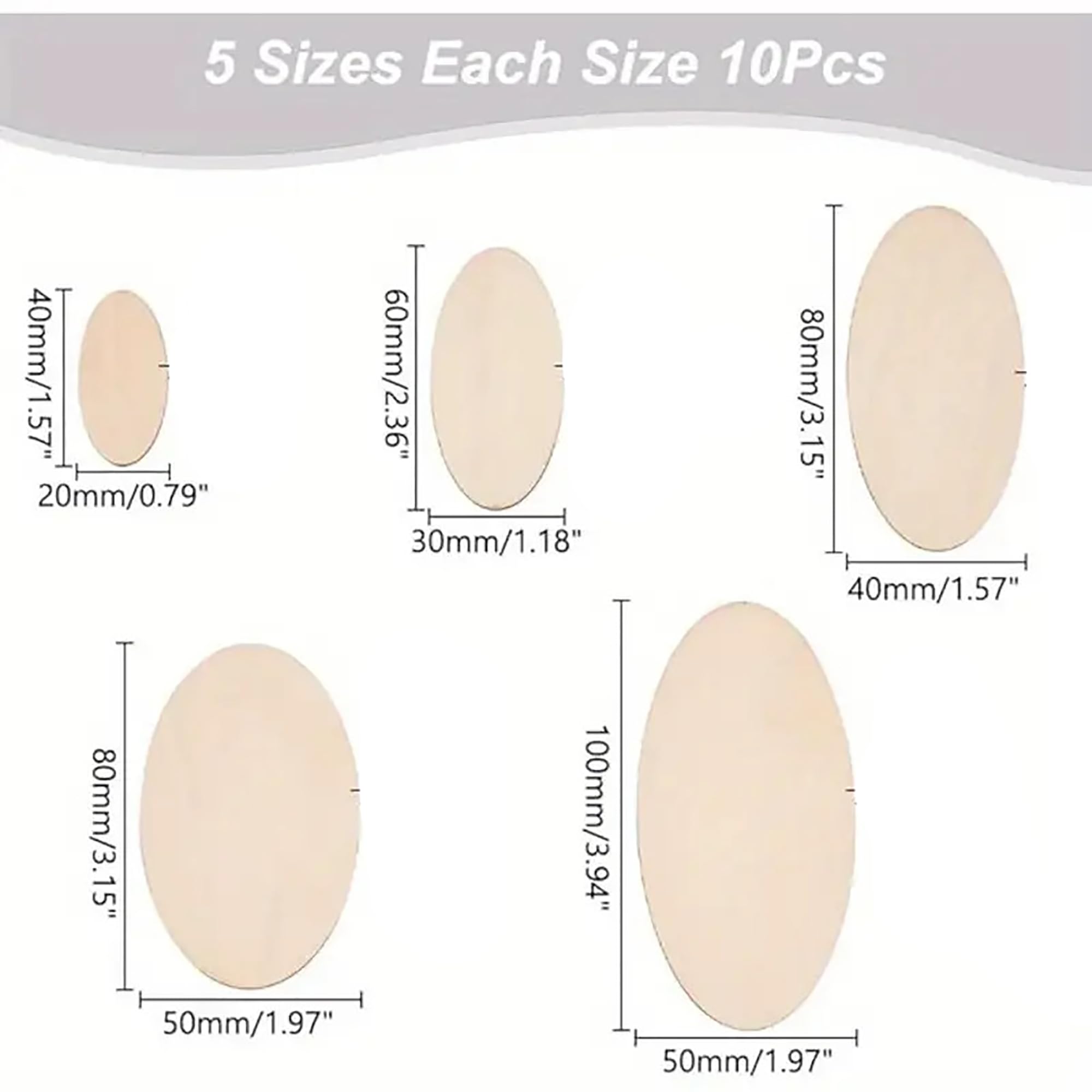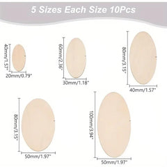 This American Elm 50 Piece Set offers five sizes of oval wood blanks (20mm/0.79" to 100mm/3.94") in a warm Blanched Almond hue. Crafted from 2.7mm MDF, these versatile pieces are perfect for artists, teachers, and DIY enthusiasts.