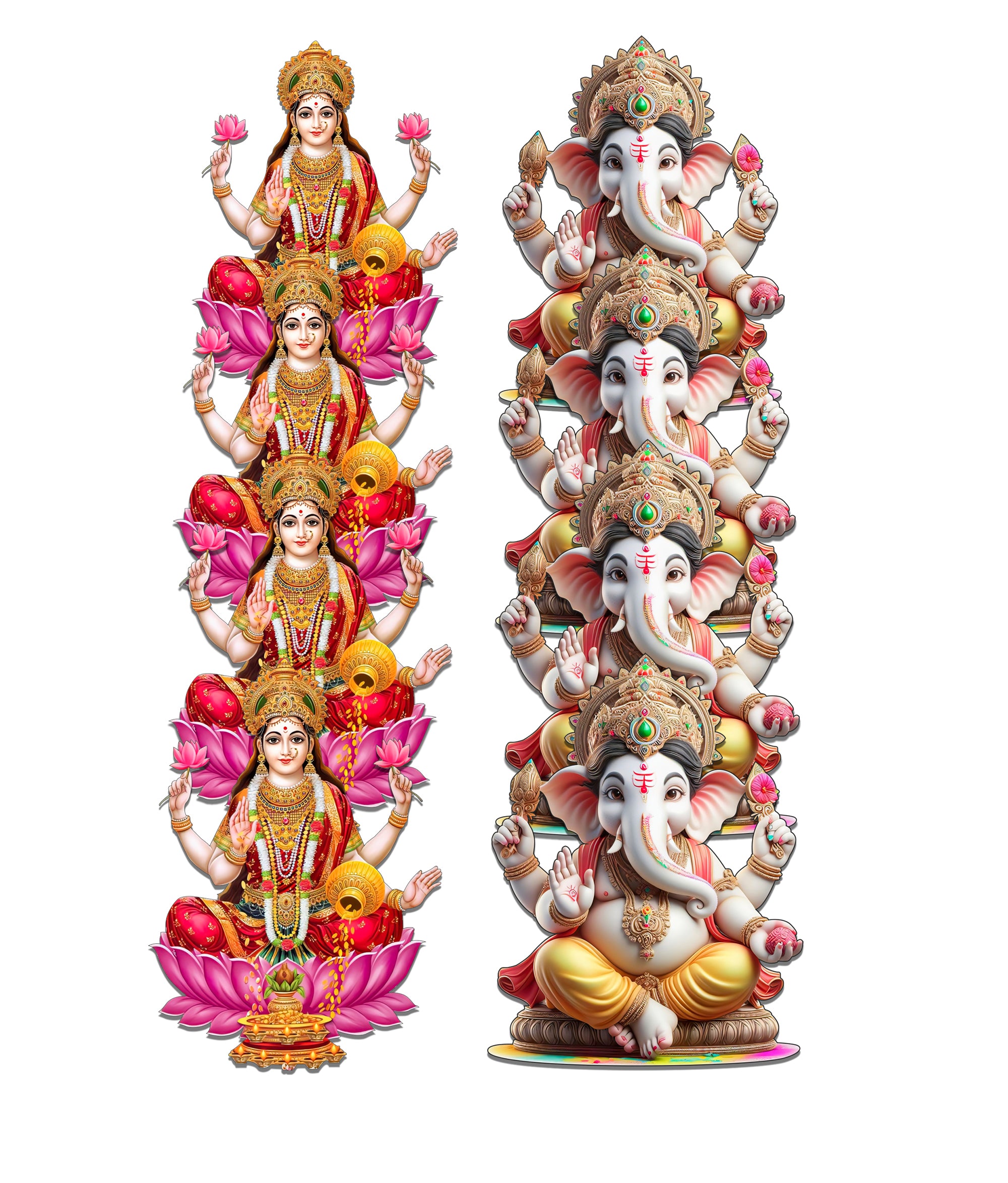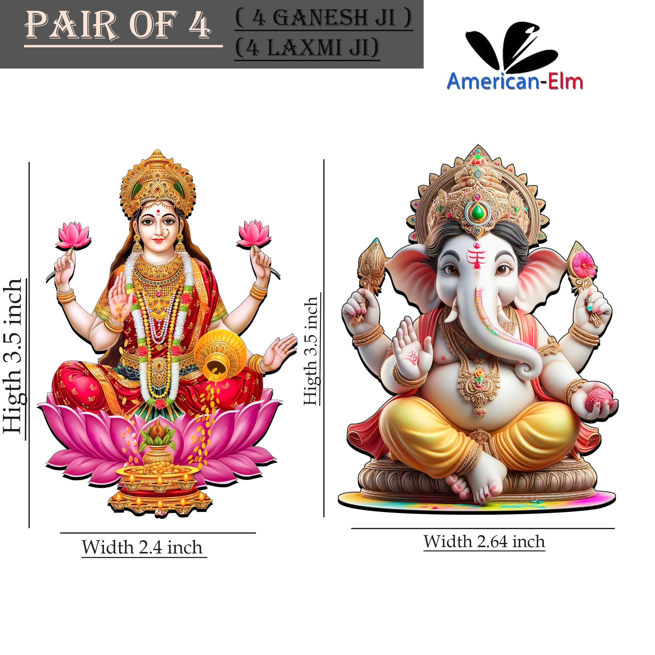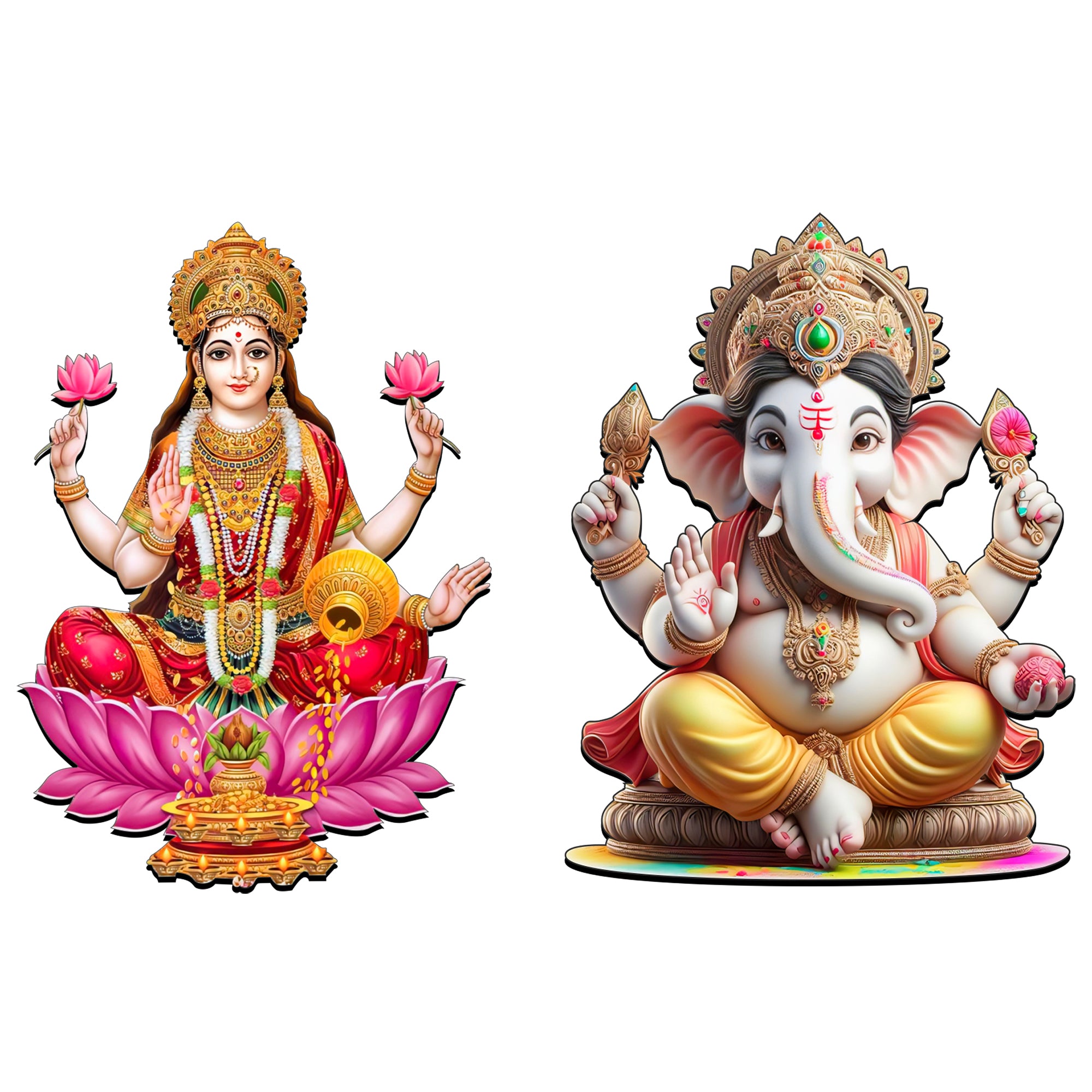 Laxmi Ji & Ganesh Ji Printed MDF Cutout Packs 3.5 inch– Perfect for Diwali Décor & Ornaments