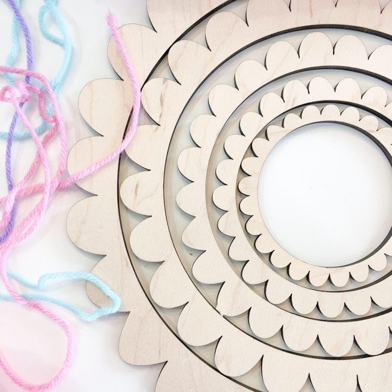 Elevate your textile crafts with these precision-cut scalloped weaving looms! This set includes five graduated circles (3" to 10" / 7.6cm to 25.4cm) crafted from 2.7mm beige pine MDF, designed for weaving, macrame, and yarn art projects.