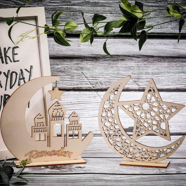 Whether you're hosting a party or simply want to create a warm and welcoming atmosphere in your home, these wooden ornaments are the perfect choice. Celebrate the spirit of Ramadan and Eid Mubarak with elegance and style.