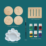 The kit also includes a stand for displaying the finished coasters, making it a perfect addition to any tabletop or shelf. Whether it's a rainy day activity or a creative project for a birthday party, our Wooden Coasters Madhubani Painting Kit is sure to delight kids and parents alike.