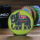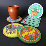 Each coaster features intricate Madhubani patterns, adding a touch of cultural flair to your home decor. Crafted from high-quality wood, these 4-inch coasters provide a sturdy canvas for painting and ensure long-lasting durability.