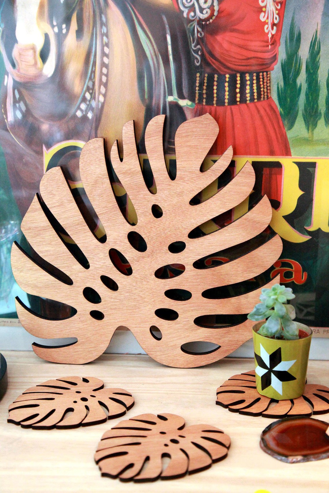 AmericanElm Dining Table Placemats are made of quality Birch plywood material. This set contains 1 pieces Placemat& 3 Coaster. These placemats decorates your dining table and gives it an exotic look and also protects table from scratches and wet marks, the color and design of the mats are praiseworthy and looks very attractive and elegant and will enhance the beauty of your dining as well as your kitchen. These mats are very useful and multi-purpose.