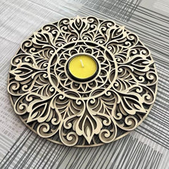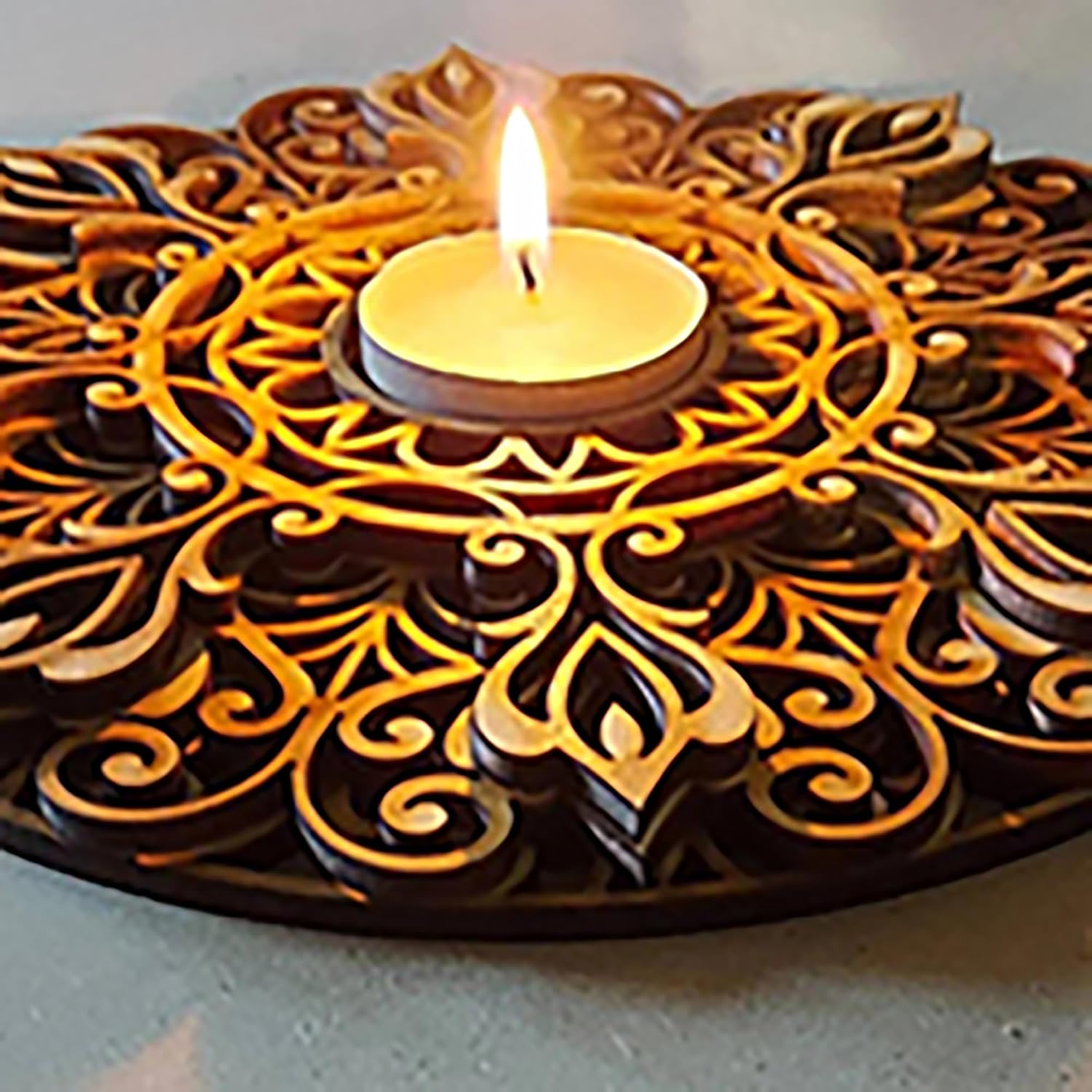 This Cliths 3 Layer Mandala Tealight Holder (23cm/9.1") transforms ordinary candles into extraordinary decor. Precision-cut from 2.7mm good MDF, its dimensional design casts mesmerizing shadows when lit.