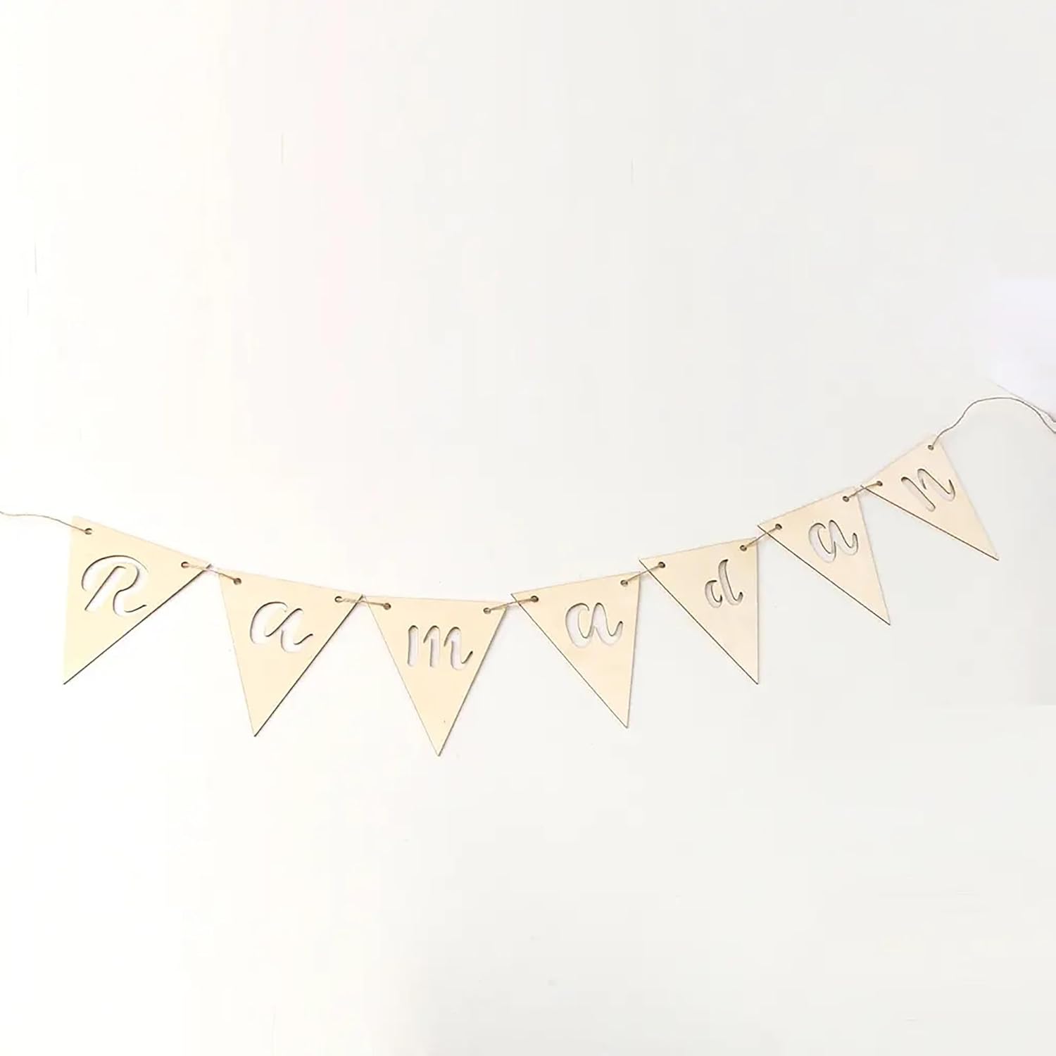 Spell out the holy month with this handcrafted letter banner from Cliths.com. Each of the 10 cm (4 Inches) tall letters (R-A-M-A-D-A-N) is precision-cut from 2.7mm MDF, complete with pre-attached jute rope for versatile hanging displays.
