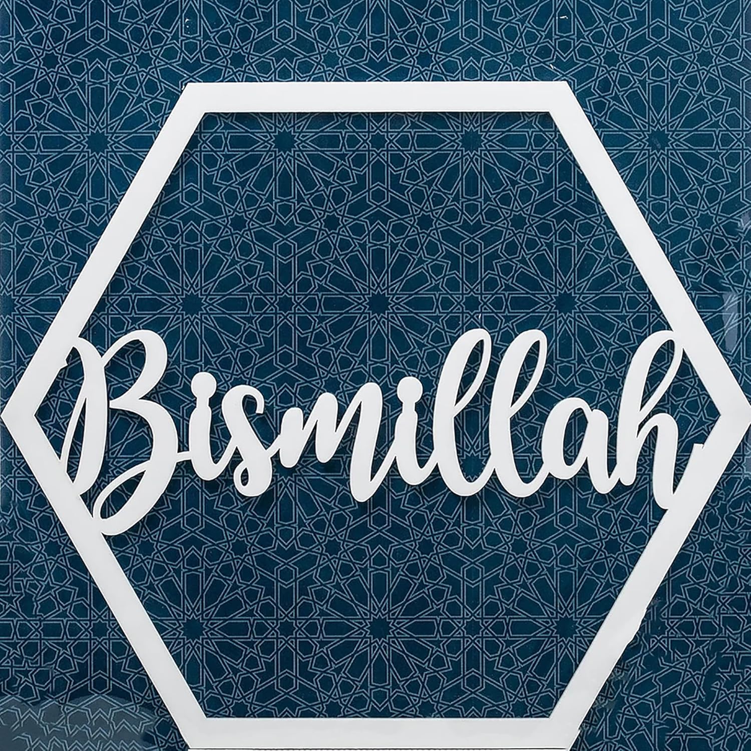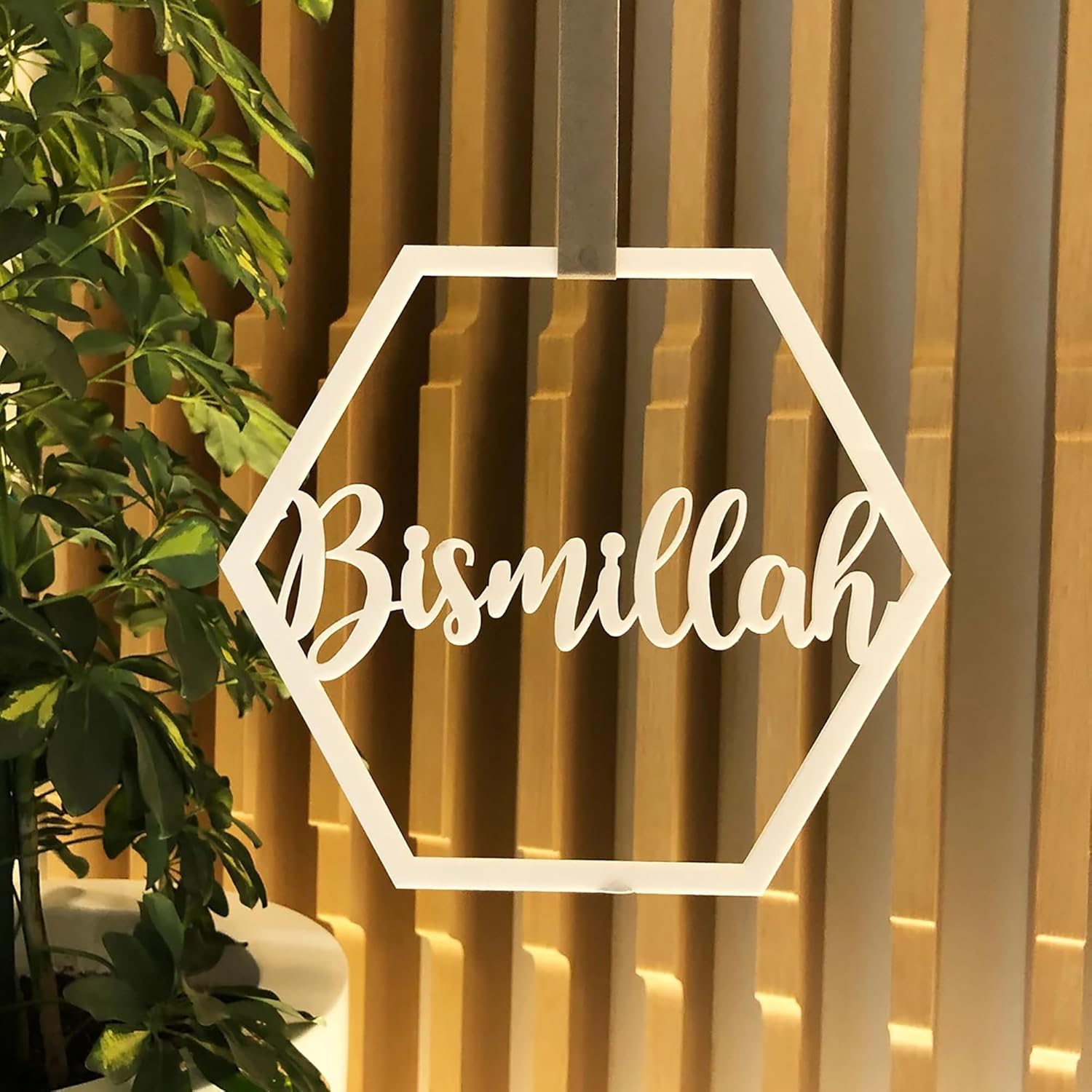 Welcome divine blessings with this handcrafted Islamic decor piece from Cliths.com. Measuring 25 cm x 22 cm (9.84x8.66 Inches), this elegant sign displays "Bismillah" in traditional Arabic calligraphy, crafted from durable 2.7mm MDF for lasting spiritual beauty.