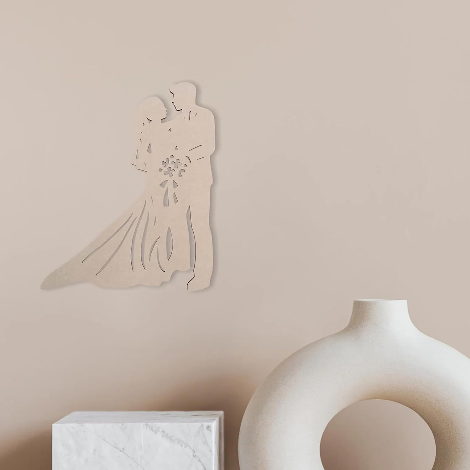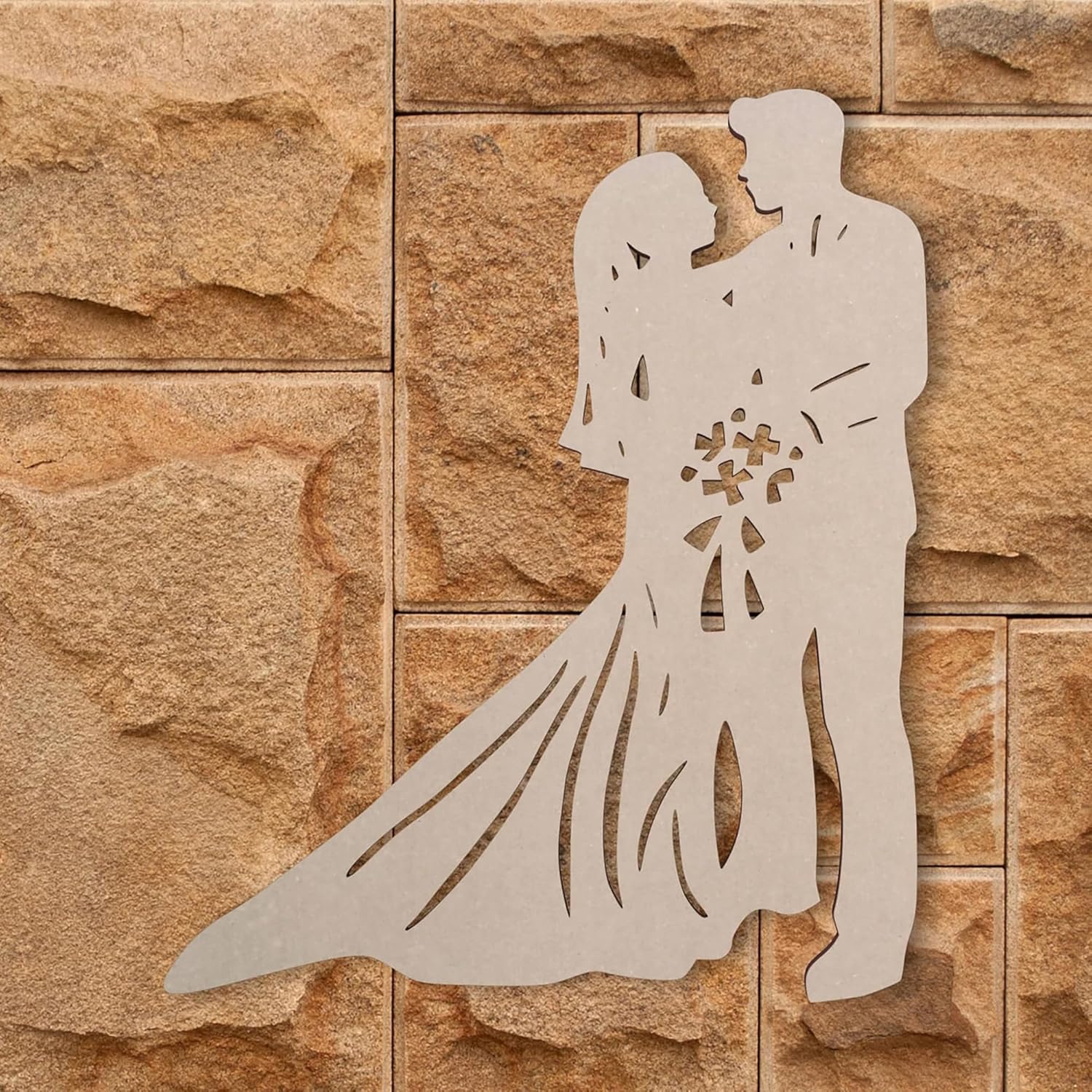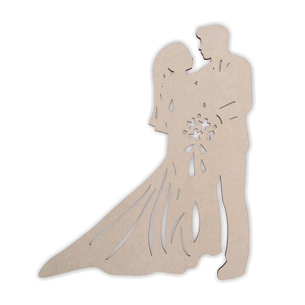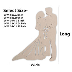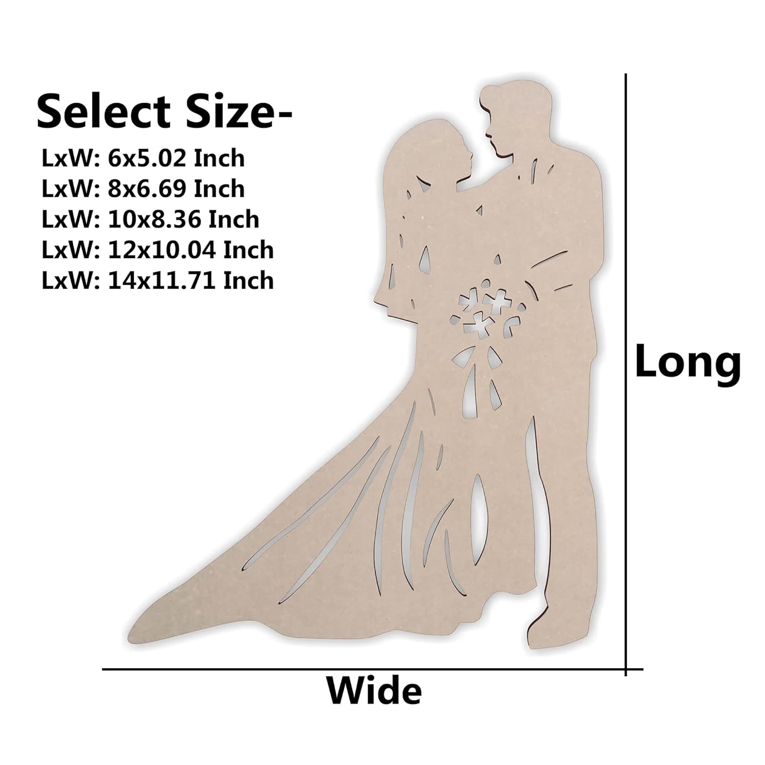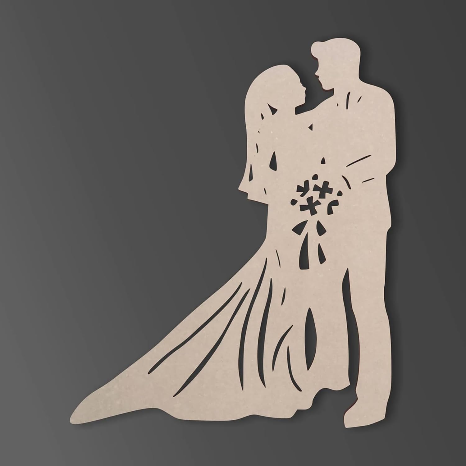 This Bride & Groom Cutout (available in 5 sizes from 6x5.02in to 14x11.71in) beautifully captures wedding joy. Made from 2.7mm MDF, it's ready to become your personalized love token.