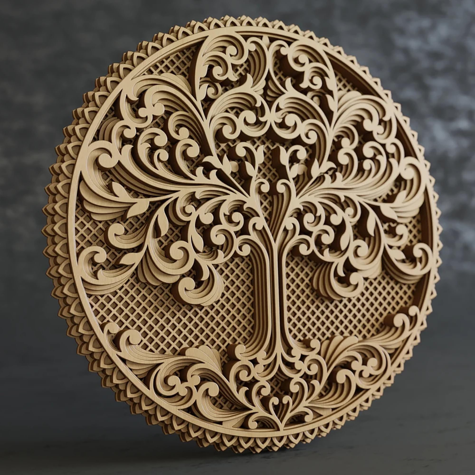 Mandala Enhance your living space with this Cliths Wooden 6 Layer Tree of Life Multilayer 3D Mandala Wall Art, designed to captivate with its intricate layers and spiritual significance. Crafted from Good-quality Multiple layers of 2.5 mm-thick pine MDF, this stunning piece serves as a beautiful focal point for any room. Available in Multiple sizes. Select as per your Area.