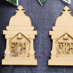 Elevate your Diwali celebrations with the Cliths Devalay Shubh Labh Sohn Diwali Decor set, a beautiful unfinished DIY wooden cutouts. These exquisite pieces are crafted from high-quality Pine MDF, each layer boasting a thickness of 2.8mm to ensure sturdiness and longevity. Measuring 4.75 x 2.75 inches.