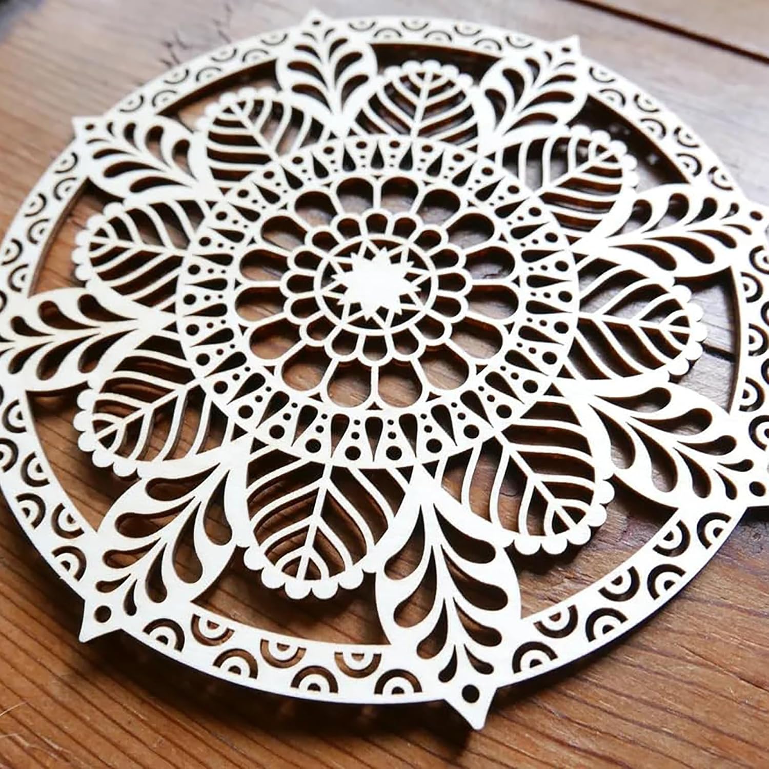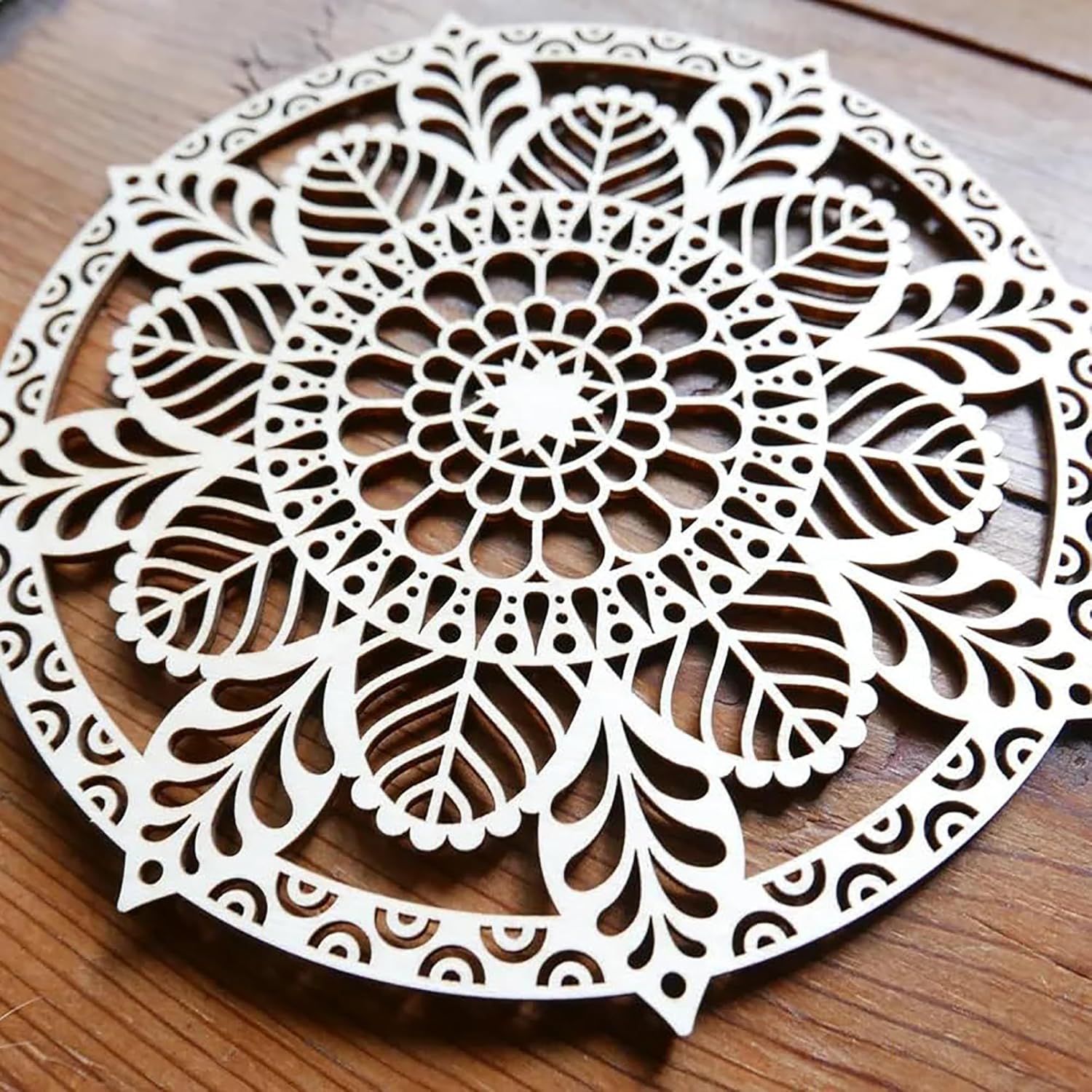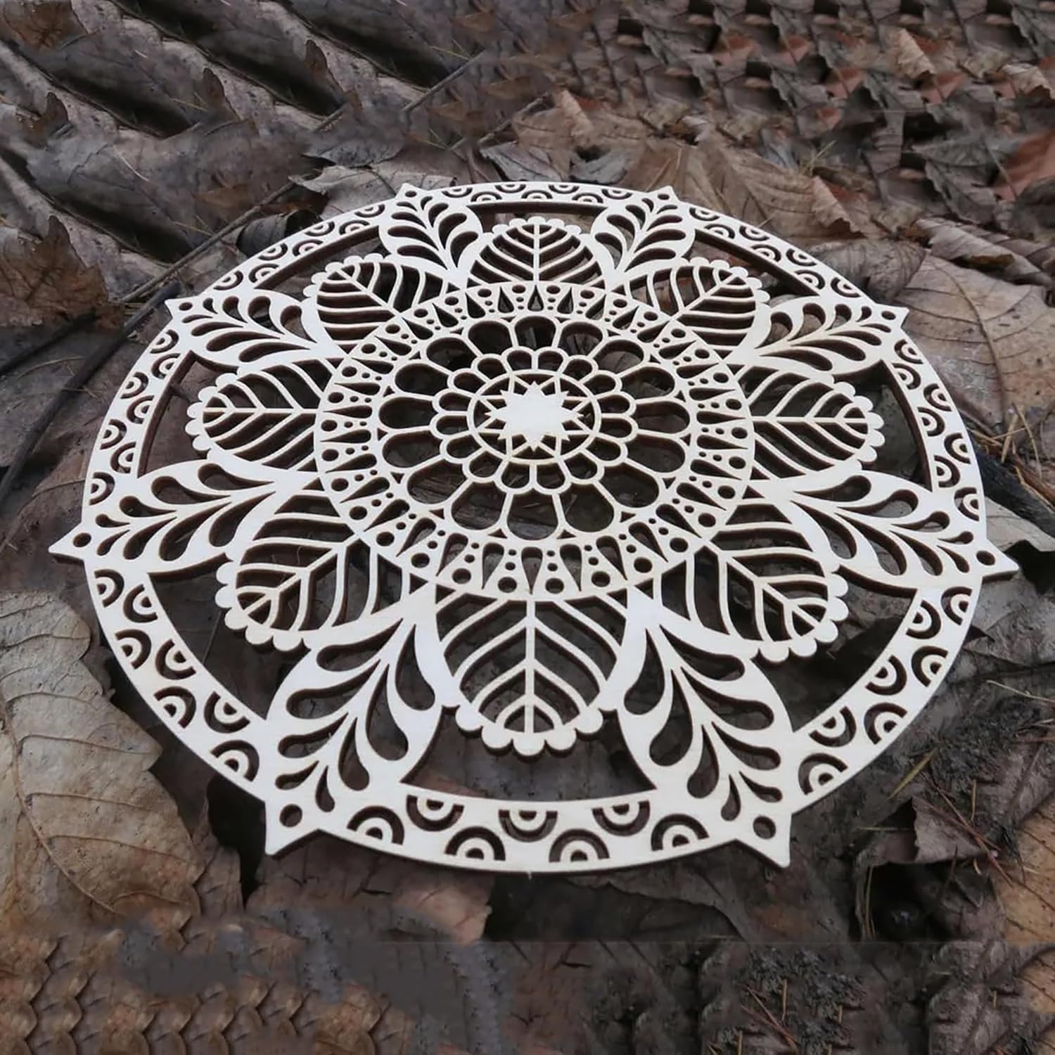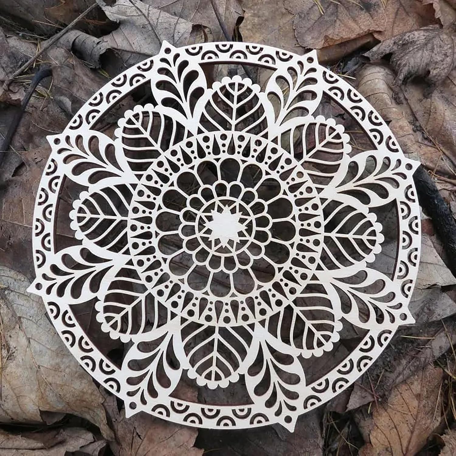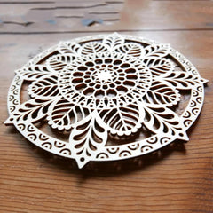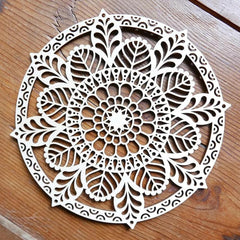 This Cliths Floral Mandala Wall Ornament (17cm/6.7") features intricate flower motifs laser cut from eco friendly 2.7mm MDF. Its natural unfinished surface celebrates rustic craftsmanship and organic beauty.