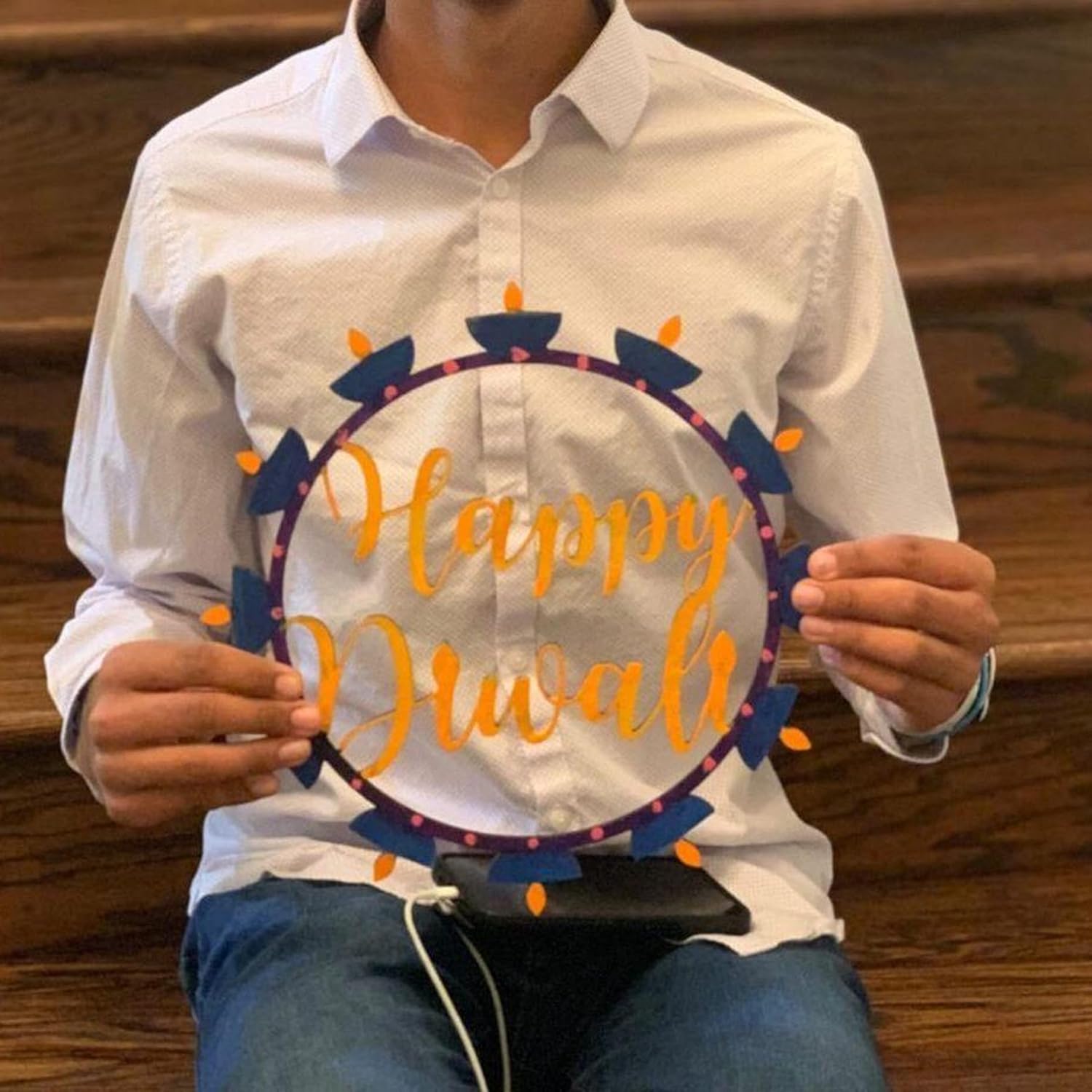 Celebrate the Festival of Lights with the Cliths Diwali Wreath, a 12x12 inch (30x30 cm) unfinished MDF base designed for creating beautiful handmade door decor.