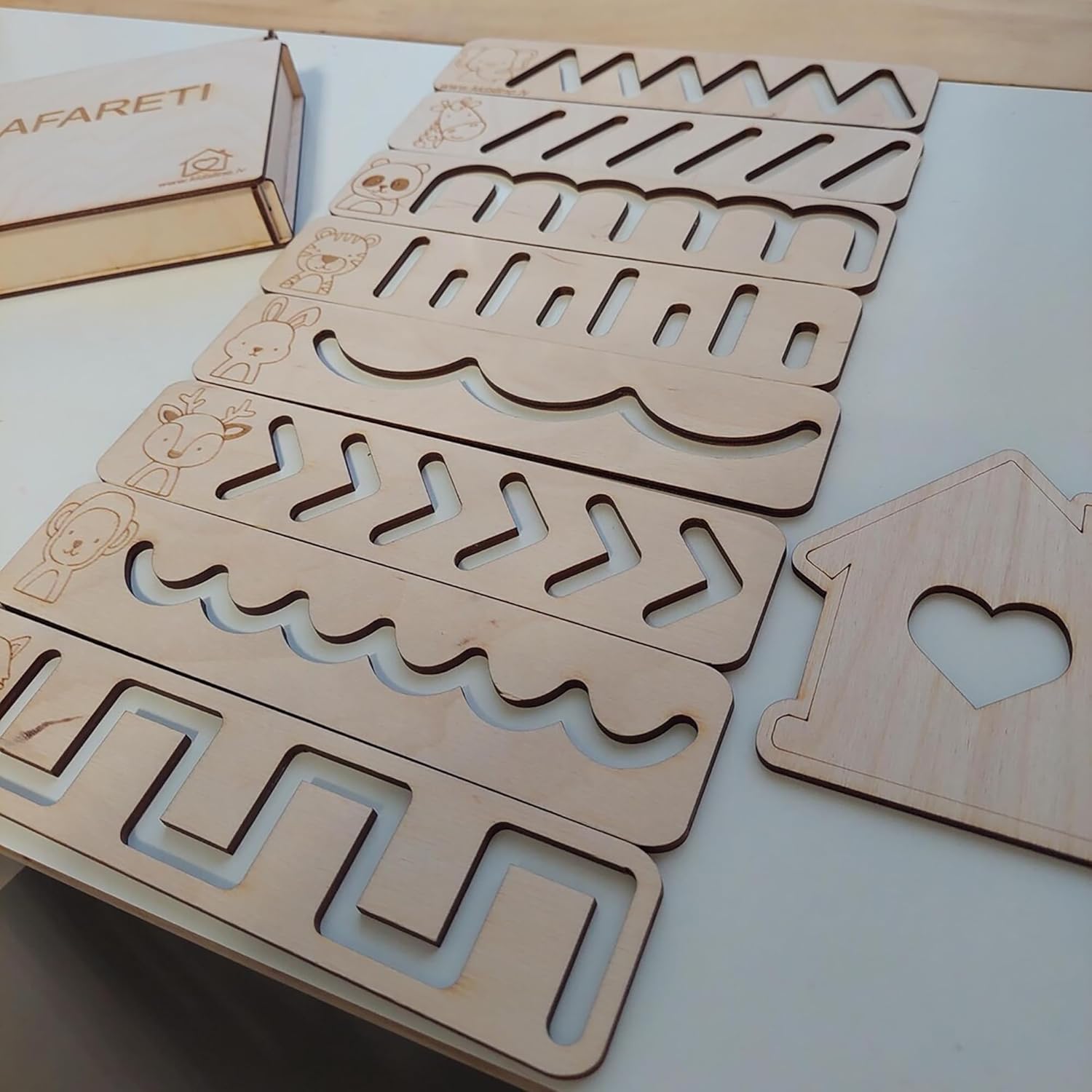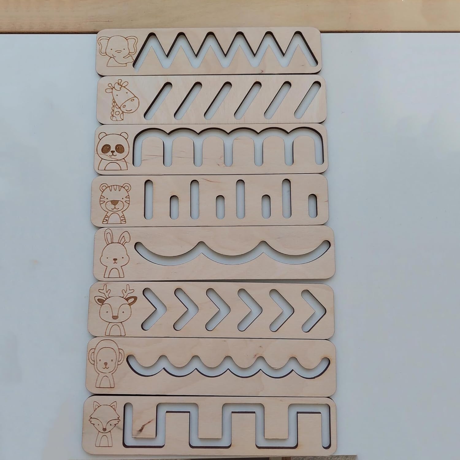 Introduce your little one to the world of writing with this delightful set of 8 Montessori wooden stencils. Designed for toddlers and preschoolers, these boards help develop essential skills like hand-eye coordination, pencil grip, and line tracing through playful patterns and adorable animal engravings.