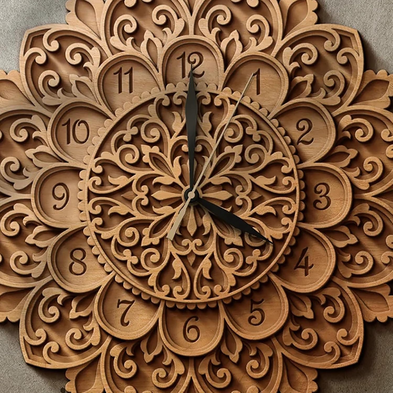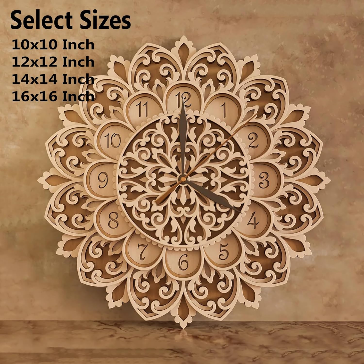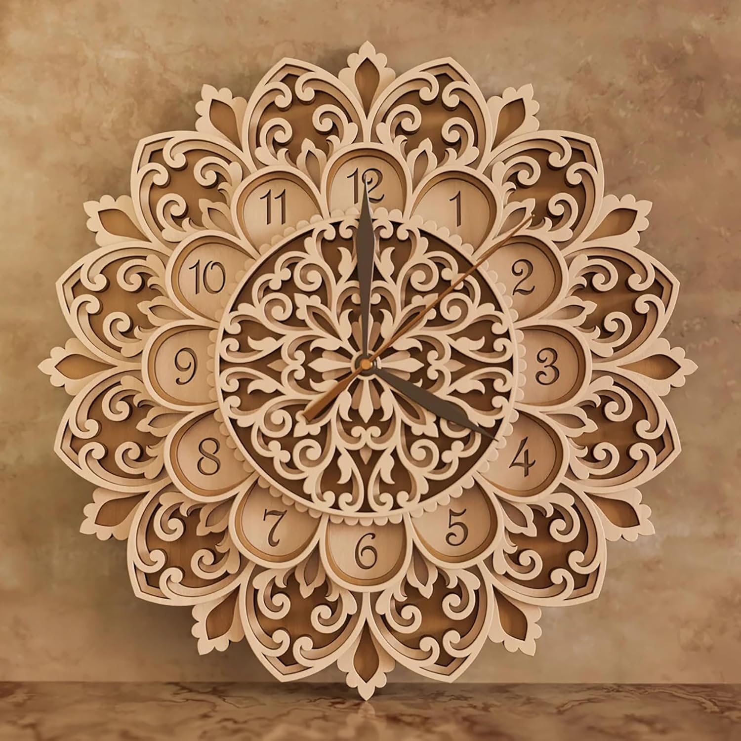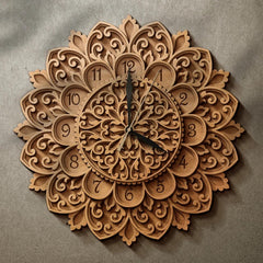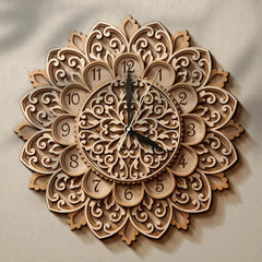 This Cliths Multilayer Mandala Clock (10-16 inches) is more than a timepiece - it's a stunning work of art. Crafted from 2.7mm MDF, its laser-cut design casts ever-changing shadows that bring walls to life.