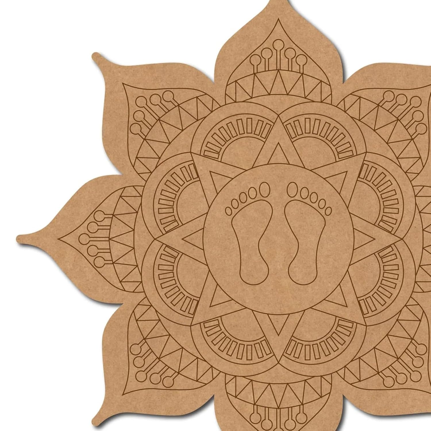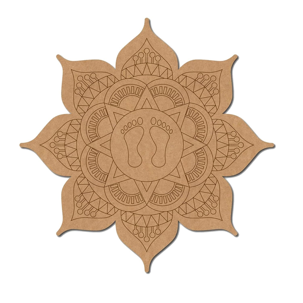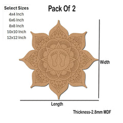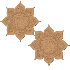 This Cliths Lakshmi Ji Paul Feet Mandala Set contains 2 identical MDF cutouts featuring the goddess's auspicious footprints with beautiful mandala designs. Crafted from 2.7mm good MDF, they're perfect for creating spiritual decor.