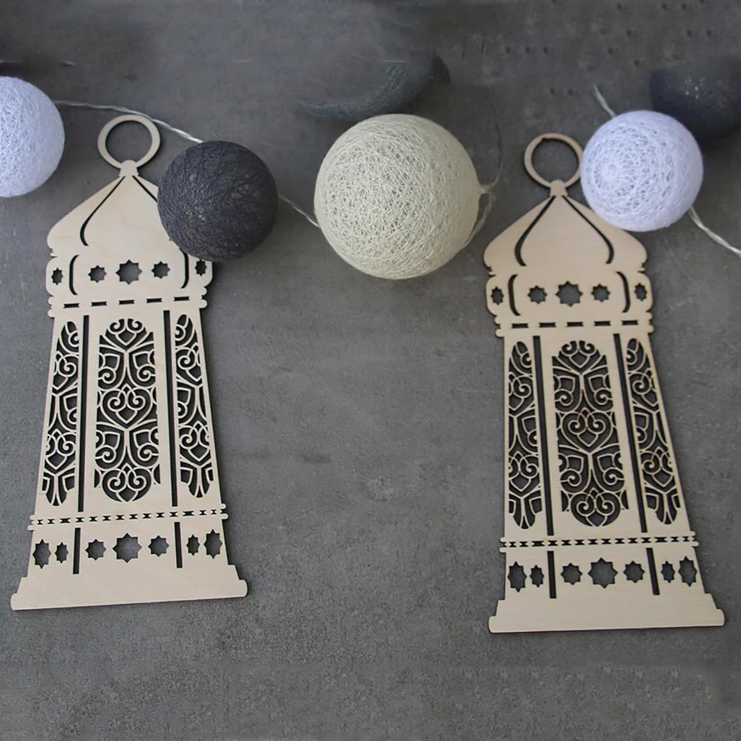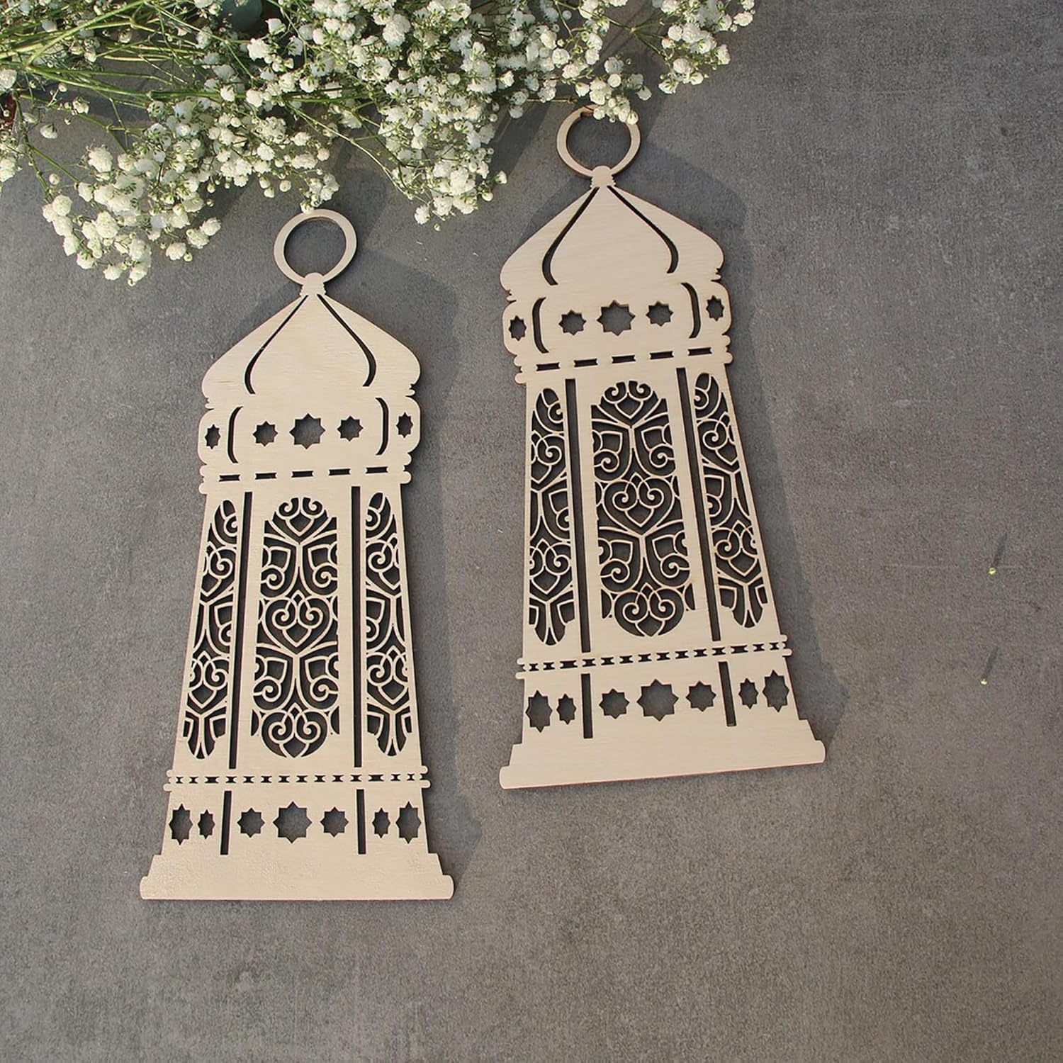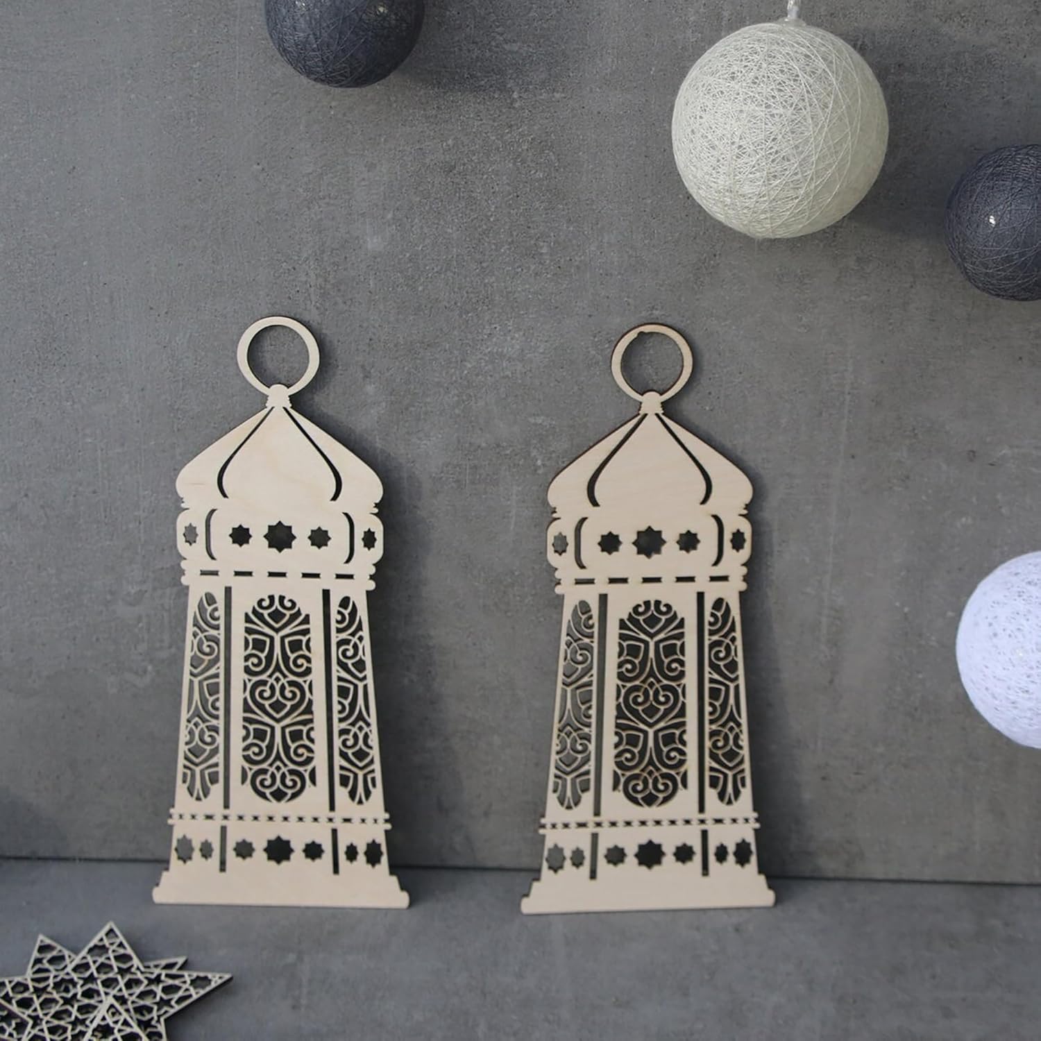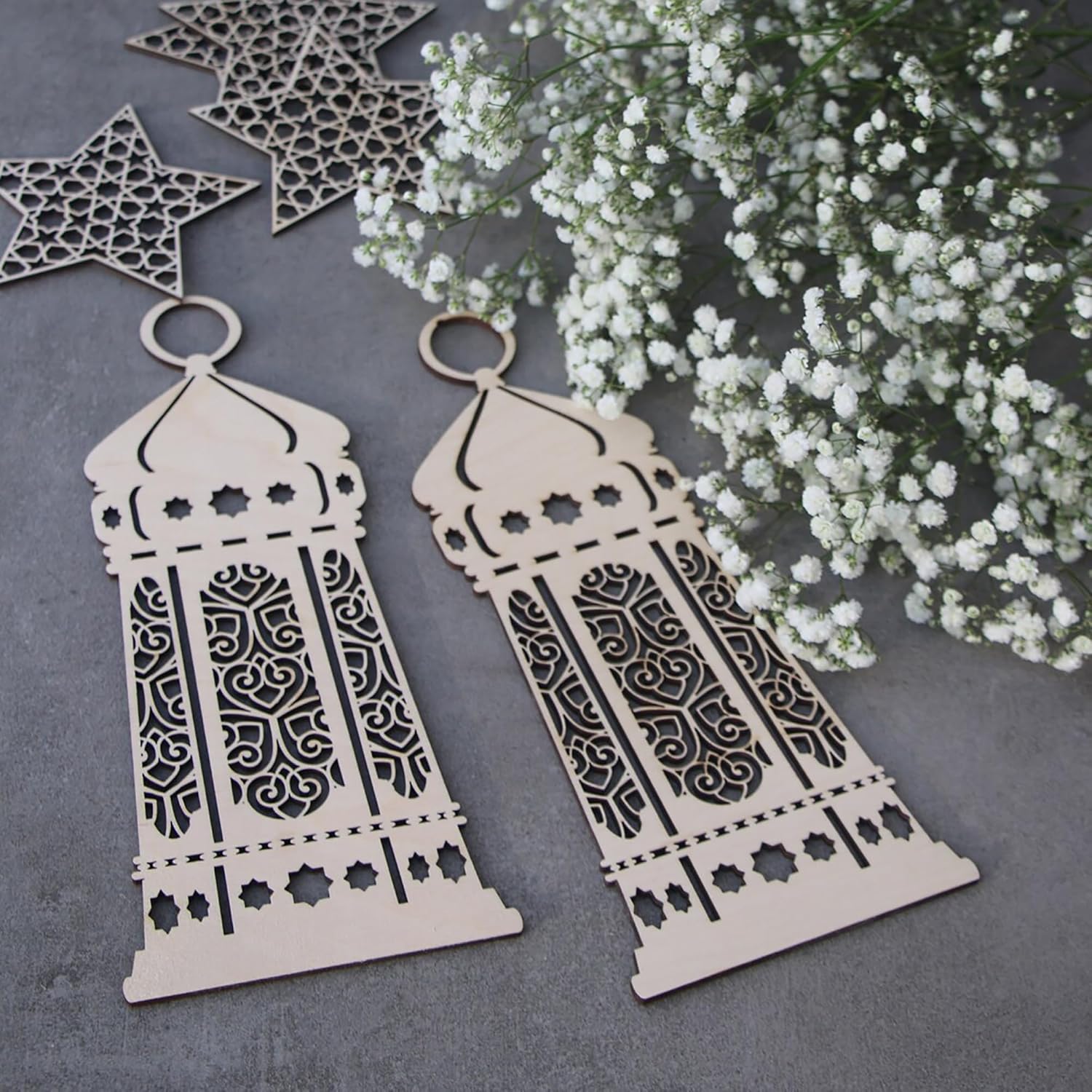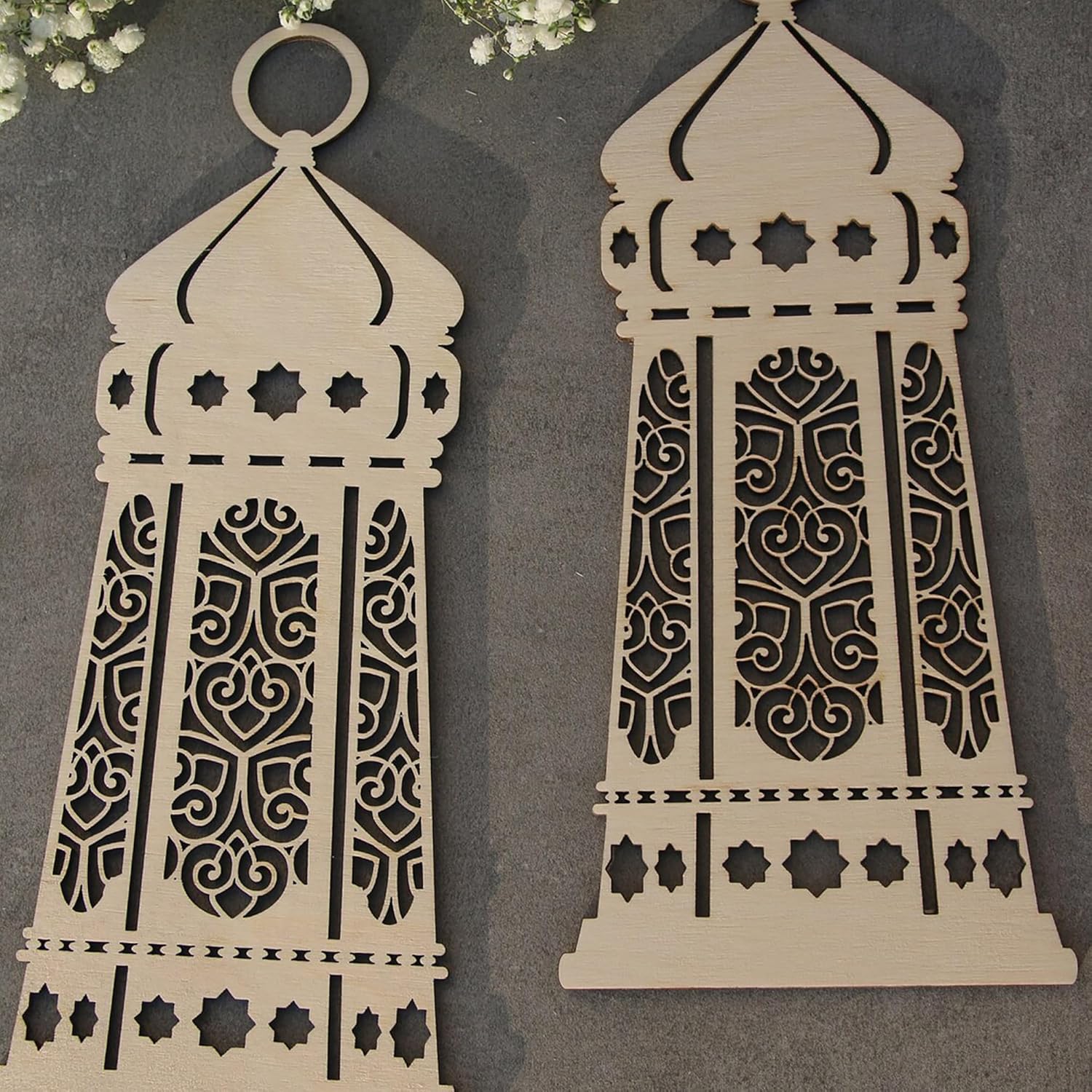Illuminate your home with this elegant pair of 11.81x4.33 inch (30x11 cm) wooden lanterns from Cliths.com. Crafted from 2.7mm MDF, they create mesmerizing light patterns for Ramadan nights.