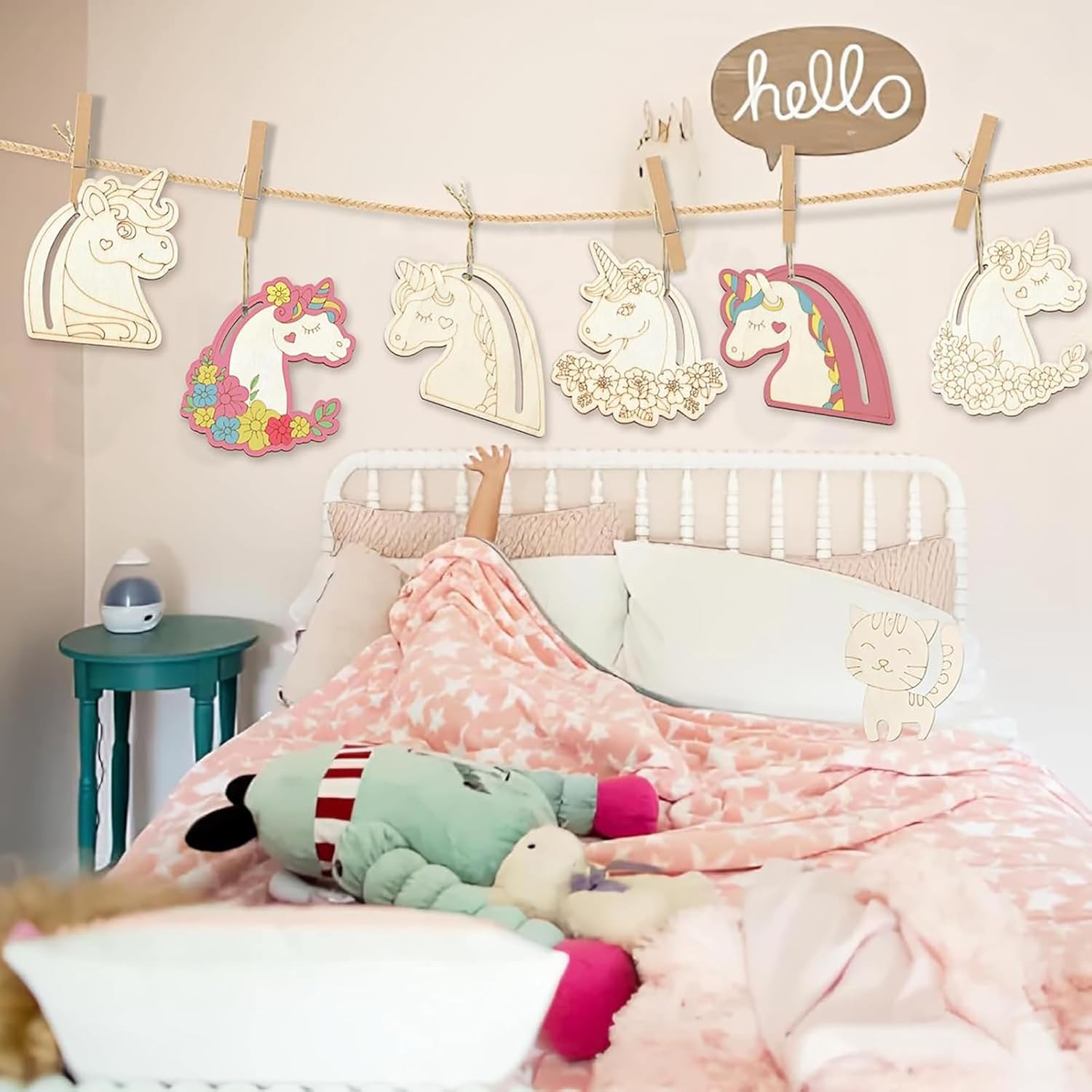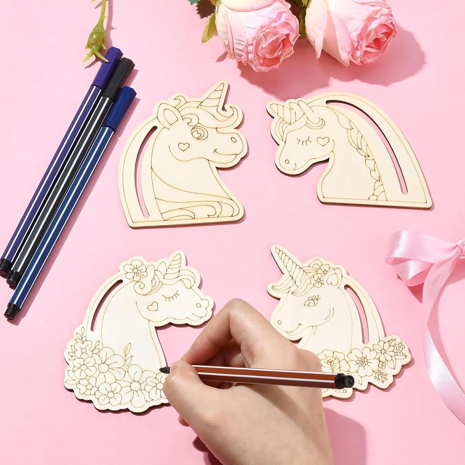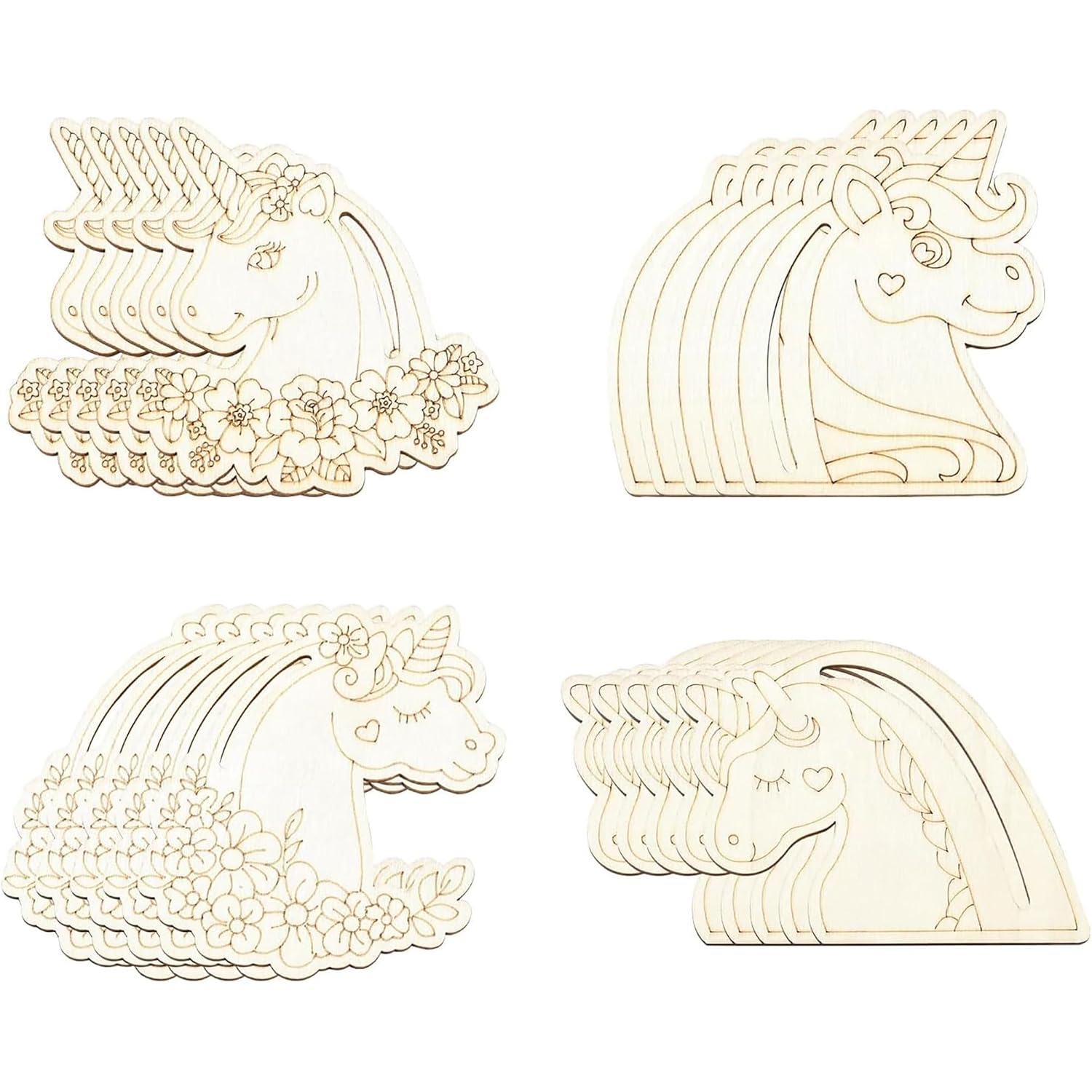 Bring fantasy to life with these 3.9 inch (10 cm) wooden unicorn cutouts from Cliths.com. This 20-piece set in 2.5mm pine MDF features whimsical designs for enchanting DIY projects.
