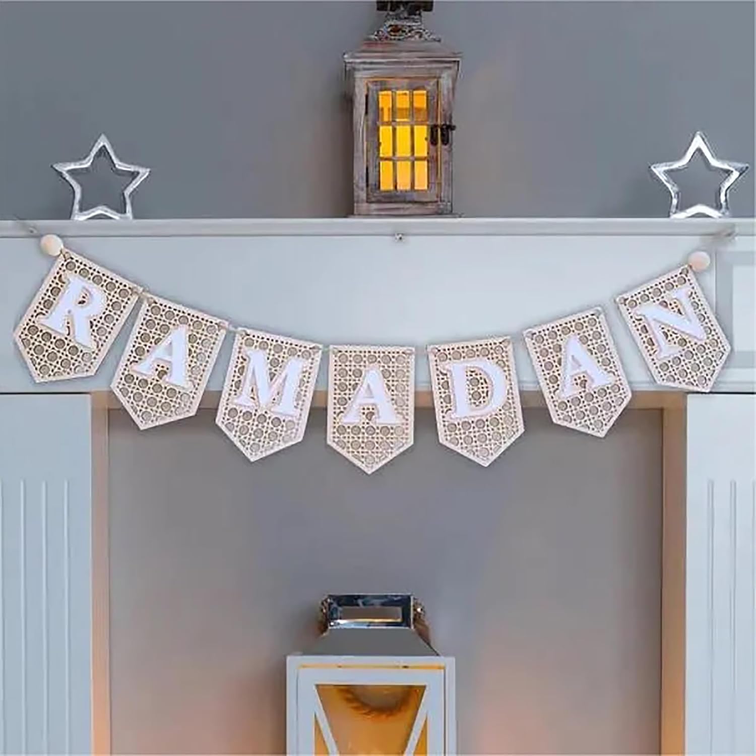 Celebrate the holy month with this handcrafted Islamic banner from Cliths.com. Measuring 18 cm x 13 cm (7.08x5.11 Inches), this exquisite decoration combines a 2.7mm MDF base with elegant wood beads and acrylic embellishments for a luxurious Ramadan display.