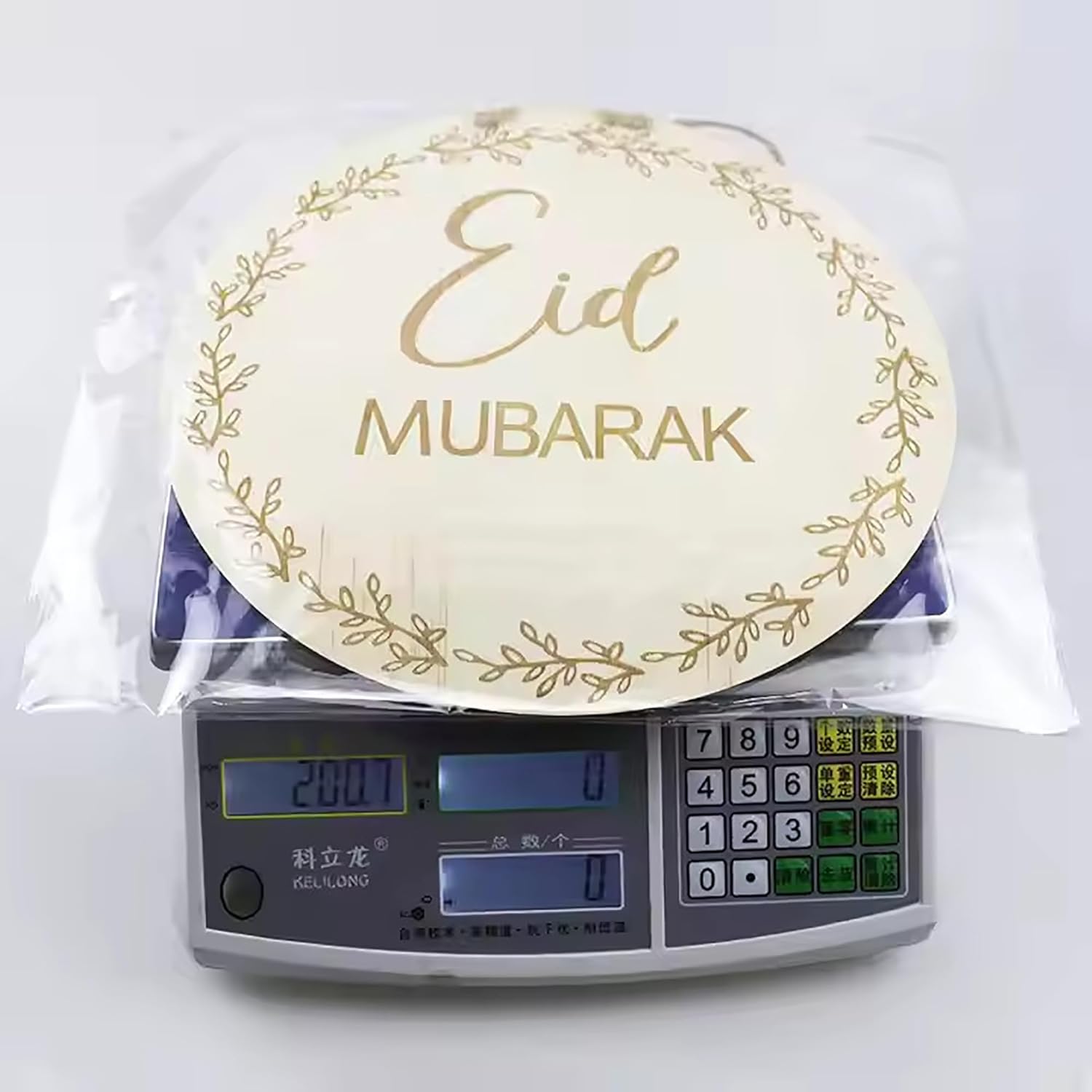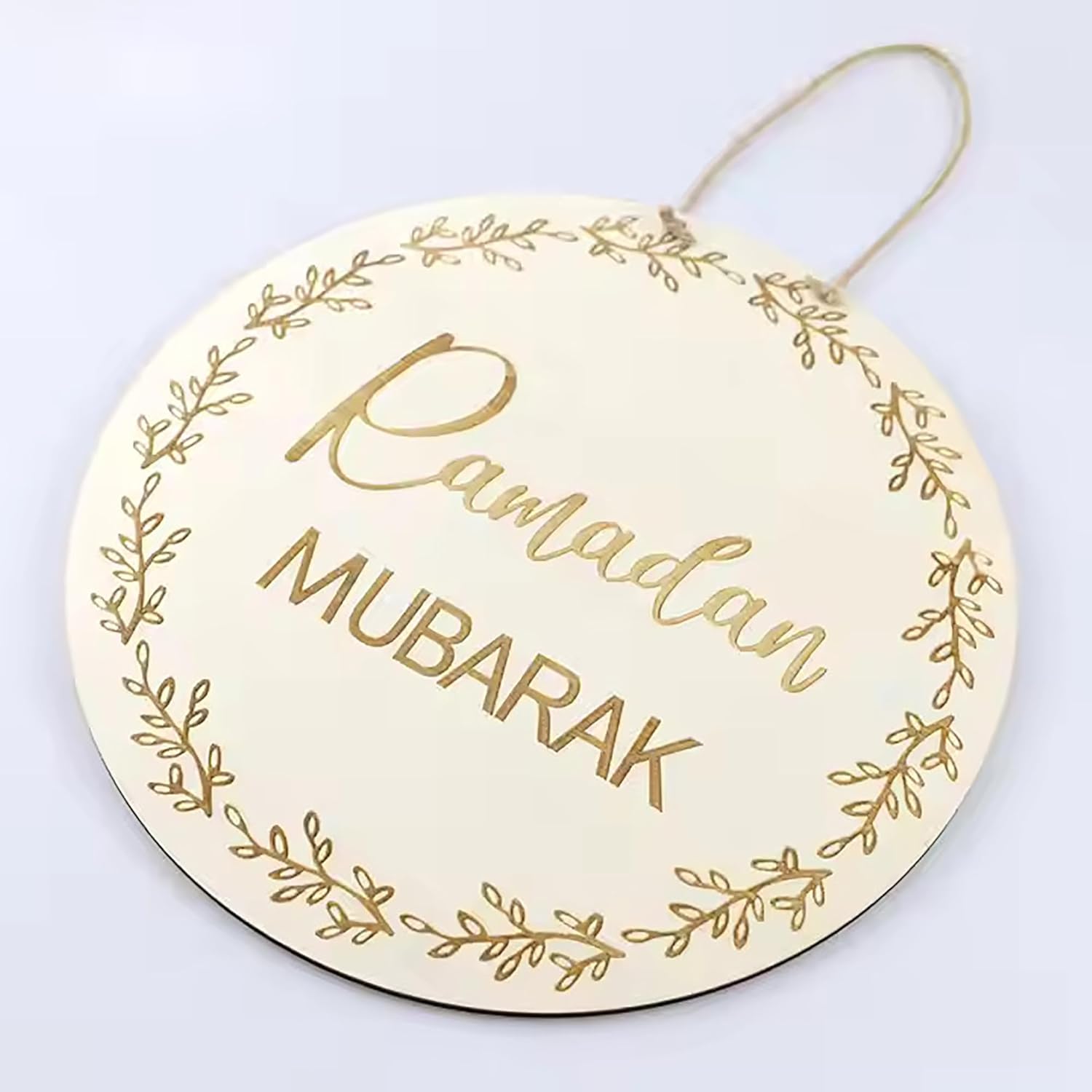 Welcome the holy seasons with this 2-piece circular decoration set from Cliths.com. Each 30 cm (11.81 Inches) wooden sign features "Ramadan Mubarak" and "Eid Mubarak" greetings, crafted from weather-resistant 2.7mm MDF with pre-attached hanging ropes.