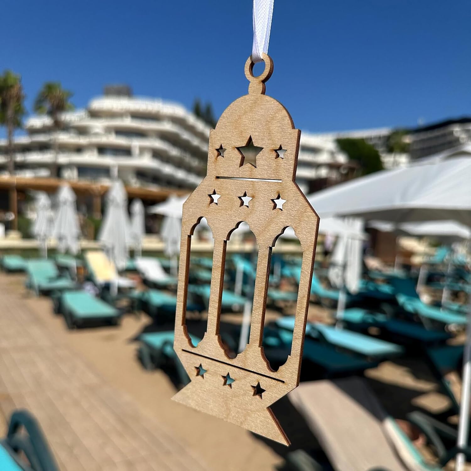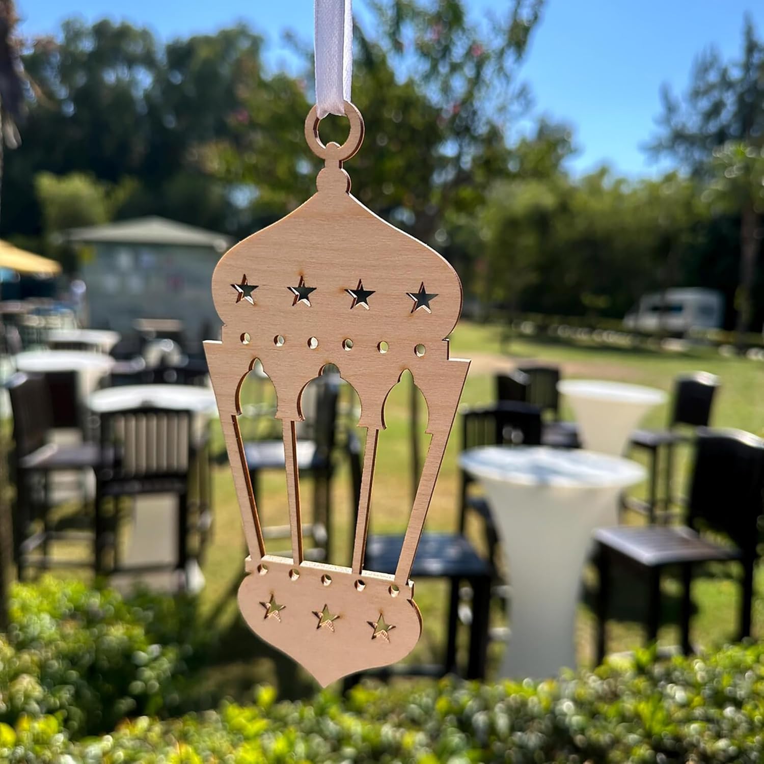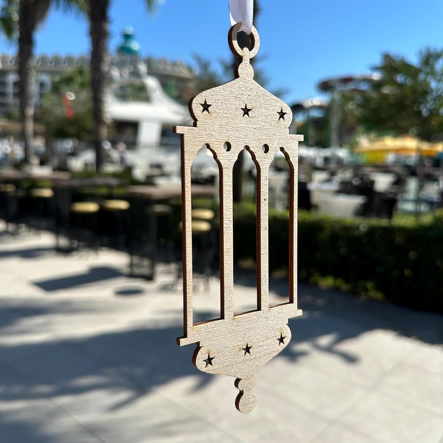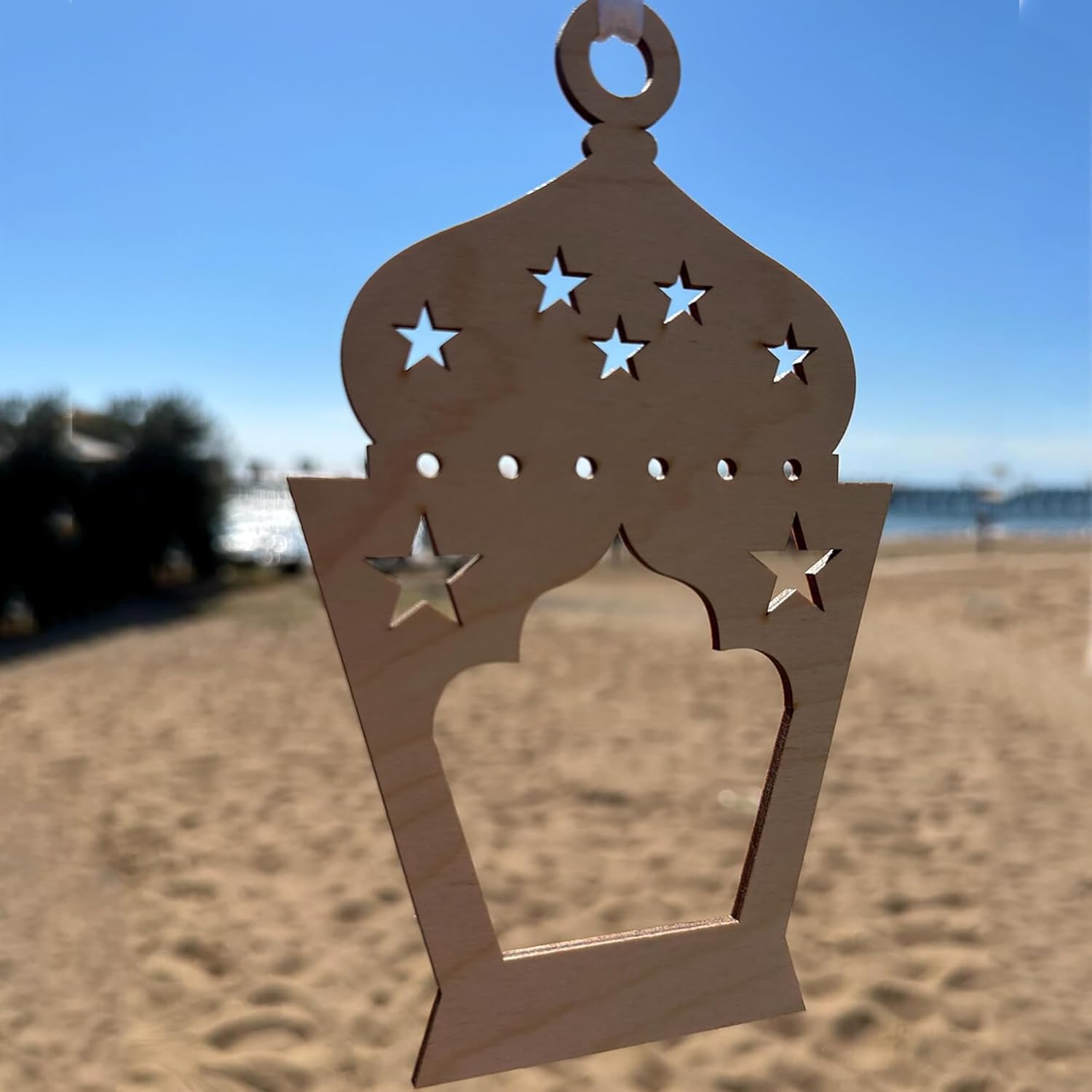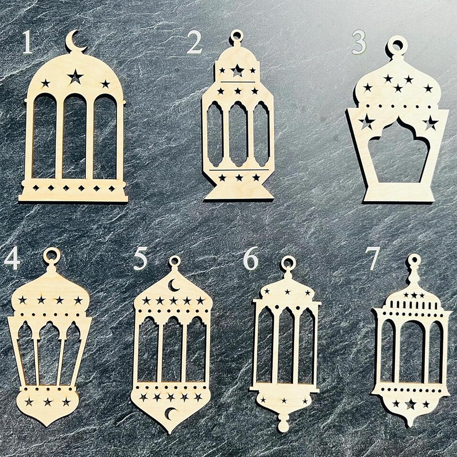 Transform your space with this 7-piece wooden decoration set from Cliths.com. Each 18x10 cm ornament features Islamic designs on 2.7mm MDF, ready for your creative touch.
