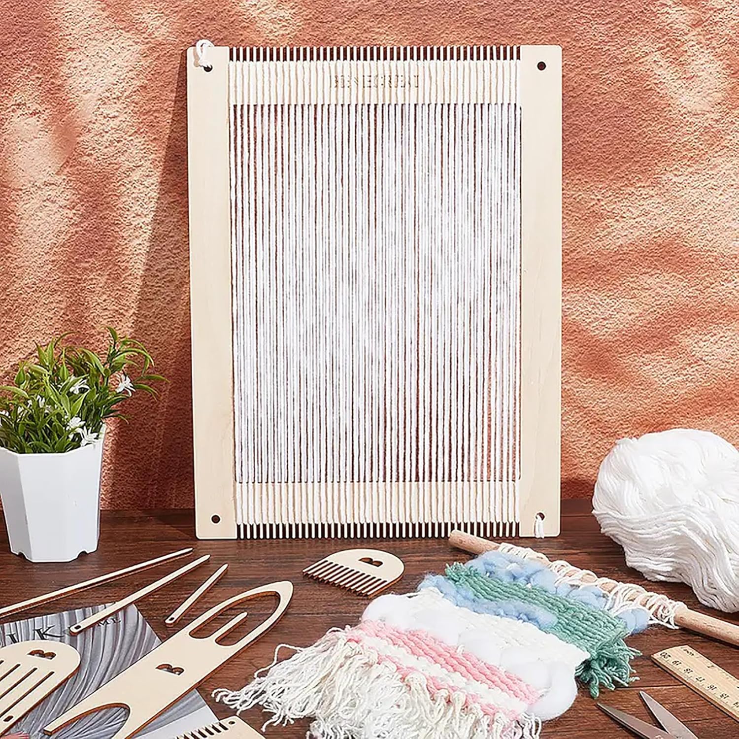 Introduce your child to the joy of weaving with our Wooden Weaving Loom Kit for Kids. This easy-to-use set includes a wooden weaving loom frame, shuttle, yarn, and accessories – everything needed to start weaving right away.