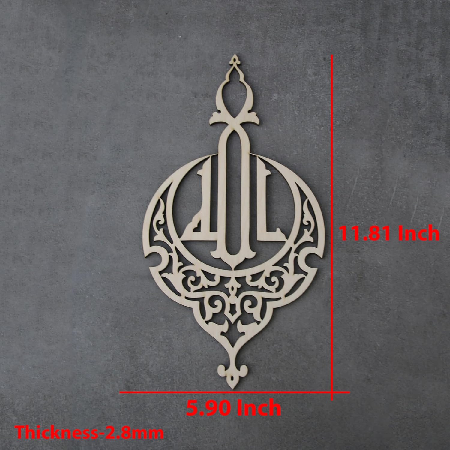 Adorn your walls with this 30 cm laser-cut "Allah" sign from Cliths.com. Crafted from 2.7mm MDF, this exquisite piece combines traditional Islamic calligraphy with modern decor elegance.