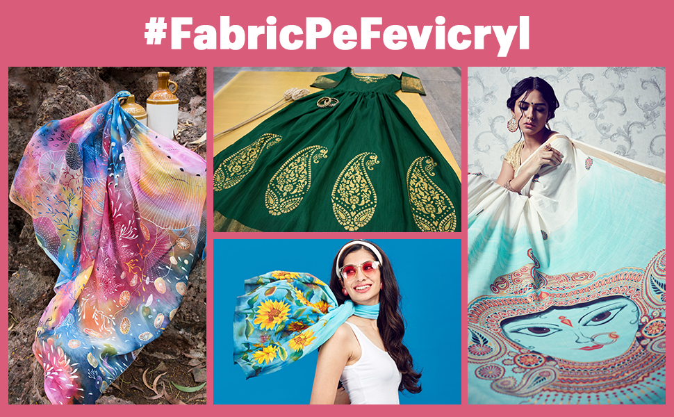 Fevicryl Fabric Colour kit (10x15ml) with 3 Unique Animal Pattern Design Stencils. Fabric Colours are specially formulated for fabric and canvas-based surfaces Ideal for fabric, canvas and fabric-based surfaces, It retains the natural feel and softness of the fabric, Remove starch completely from the fabric before painting. The kit contains 10 bottles of 15ml each-Black, White, Orange, Ultramarine Blue, Light Green, Sap Green, Crimson, Burnt Sienna, Lemon Yellow and Deep Brilliant Purple. Fabric Colours are safe and are non-toxic in nature. Fabric Colours require no binder or medium is required, Stencils that are beautiful and can create wonders as a DIY project or a handmade/handpainted garment. Sponge dabbing with fabric colours with a stencil on a garment is one of the easiest ways of painting.