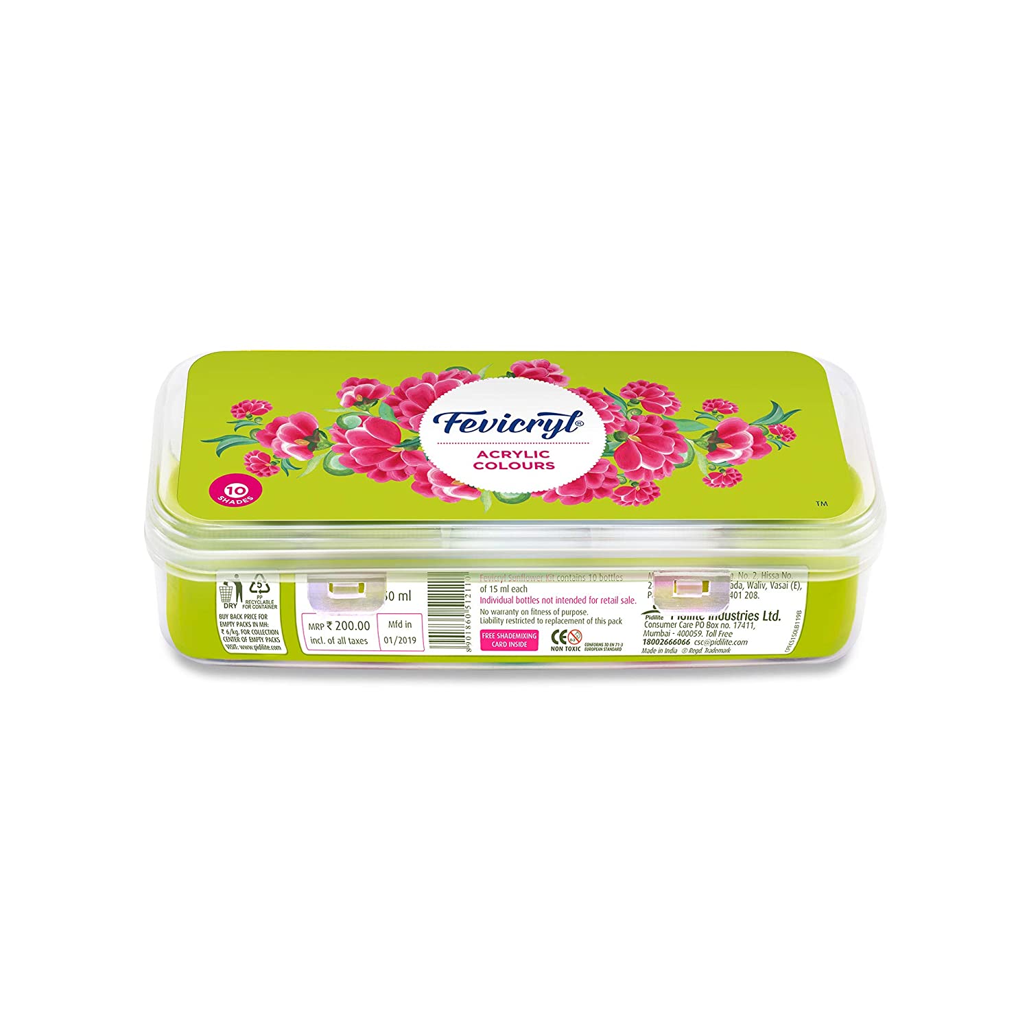PRODUCT SPECIFICATIONS:acrylic colours for canvas painting, fevicryl acrylic colours, Sunflower Kit (10 Colours x 15 ml), acrylic colours for MDF, mdf colour paint, Fabric & Textile Paints