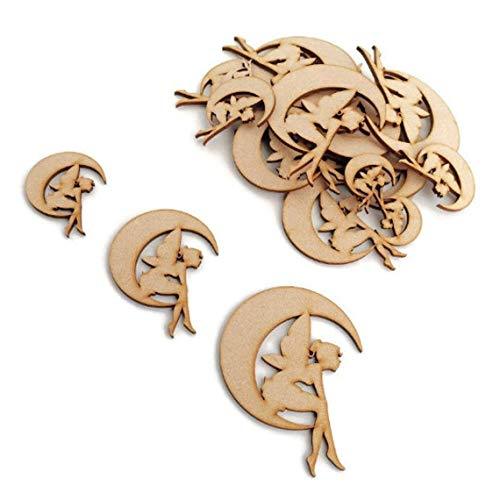 AmericanElm Pack of 10 Fairy on Moon Cutouts Craft Shapes, DIY Decor MDF Craft Shapes Multiple Sizes Available. Sizes specified are based on the longest dimension (from top/bottom or left/right). Made from High Quality 2.3mm thick MDF. Ideal For Card Making, Scrapbooking, Home Décor, and Art Projects. Smooth finish ready to paint and decorate. Whatever your ability you can further paint or decoupage these MDF wood cut outs, decorations and tags for - card making, scrap booking or general art projects.You can use these custom wood shapes for wedding guest books, table decor, scrapbooking, card making, home decor, art projects, party favors…