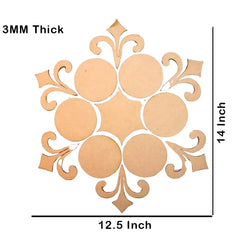 Celebrate Diwali in style with our Wooden Rangoli Design Set. This set includes a 12-inch MDF rangoli cutout that is 3mm thick, perfect for adding a touch of traditional elegance to your festive decor.